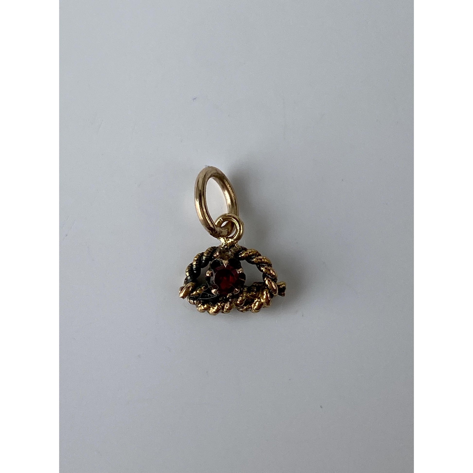 Vintage Solid 14k Yellow Gold Red Cubic Zirconia Rope Knot Stick Pin Conversion Charm