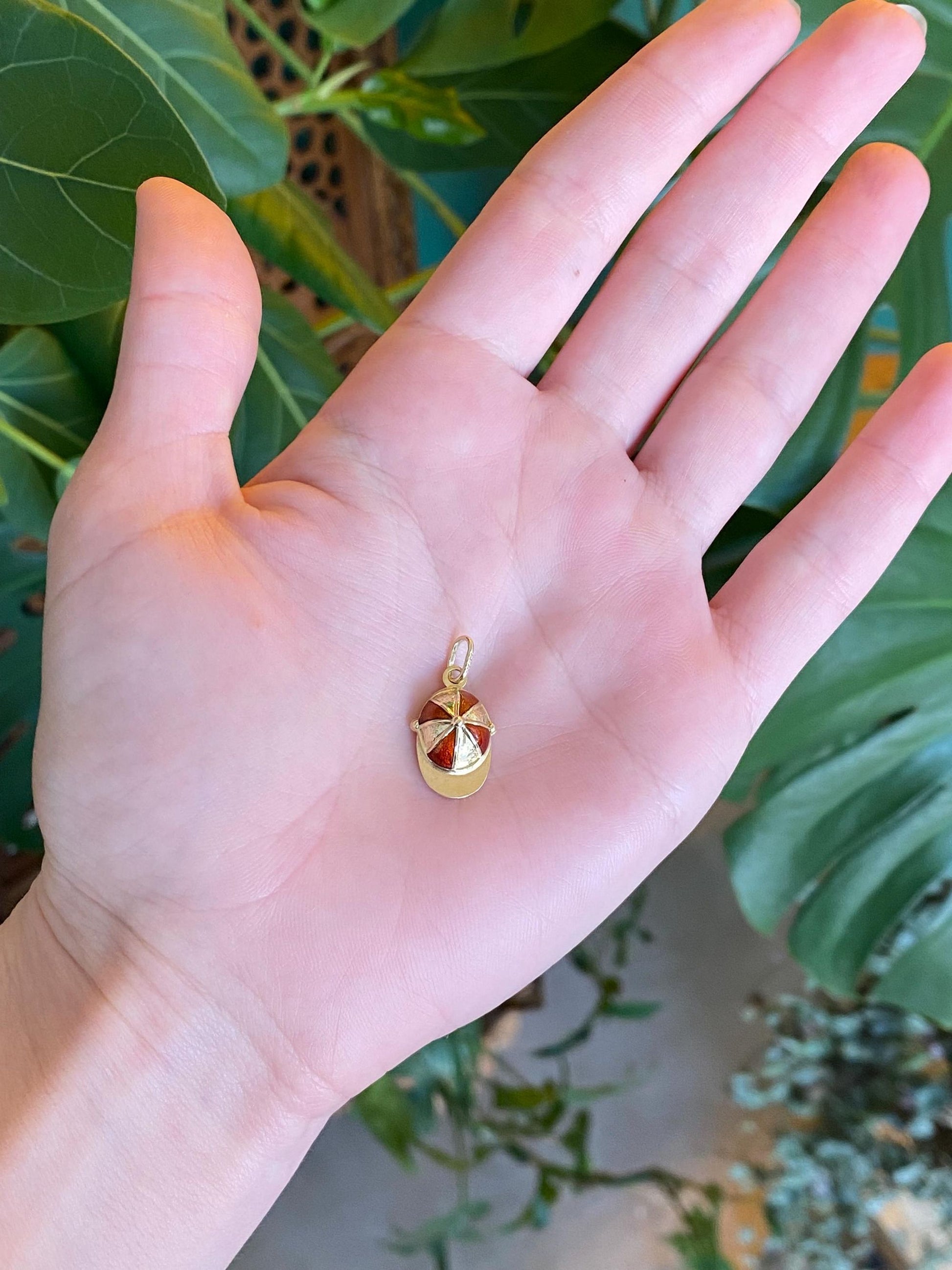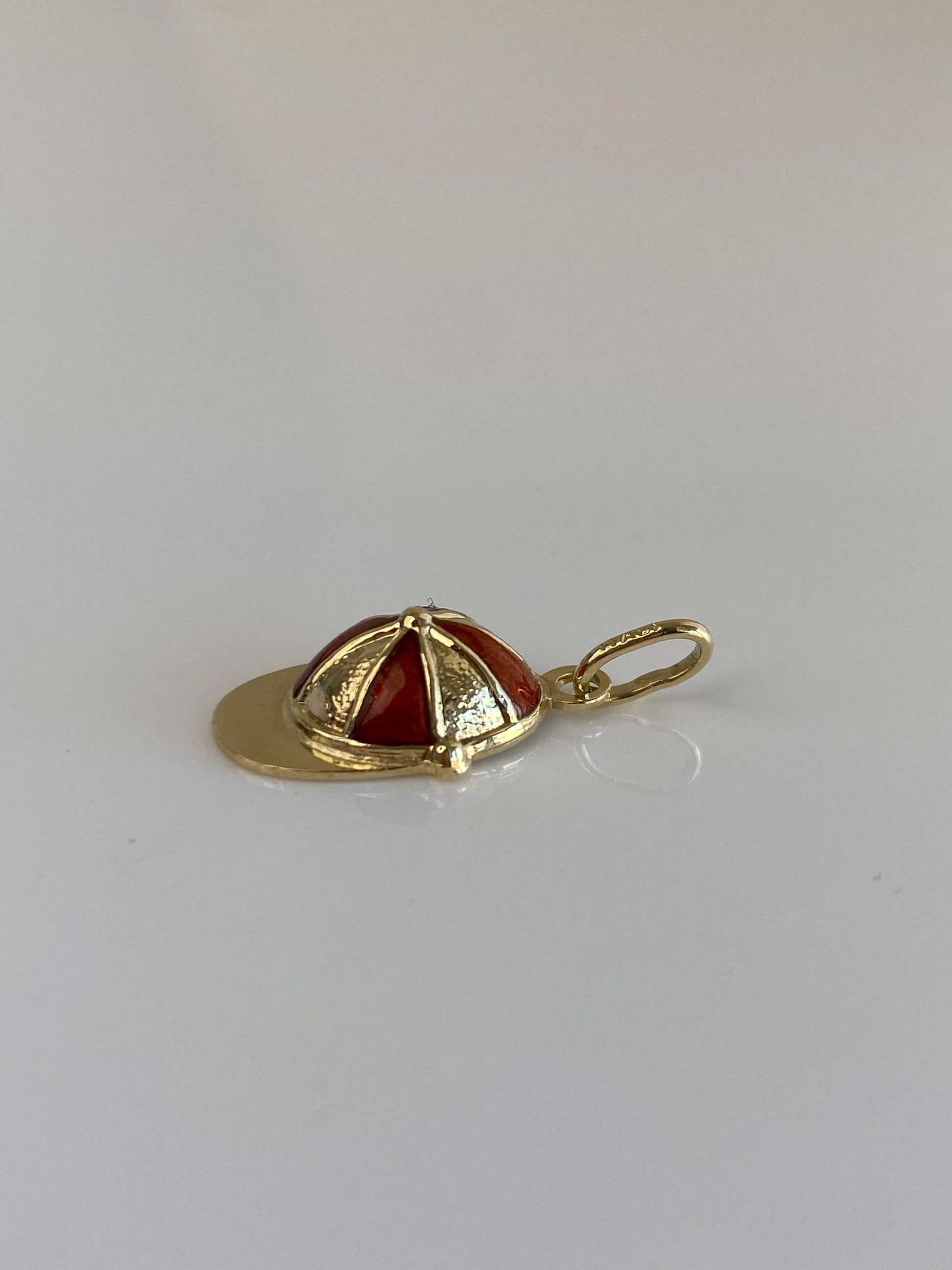 Vintage Solid 14k Yellow Gold Red Enamel Baseball Cap Charm