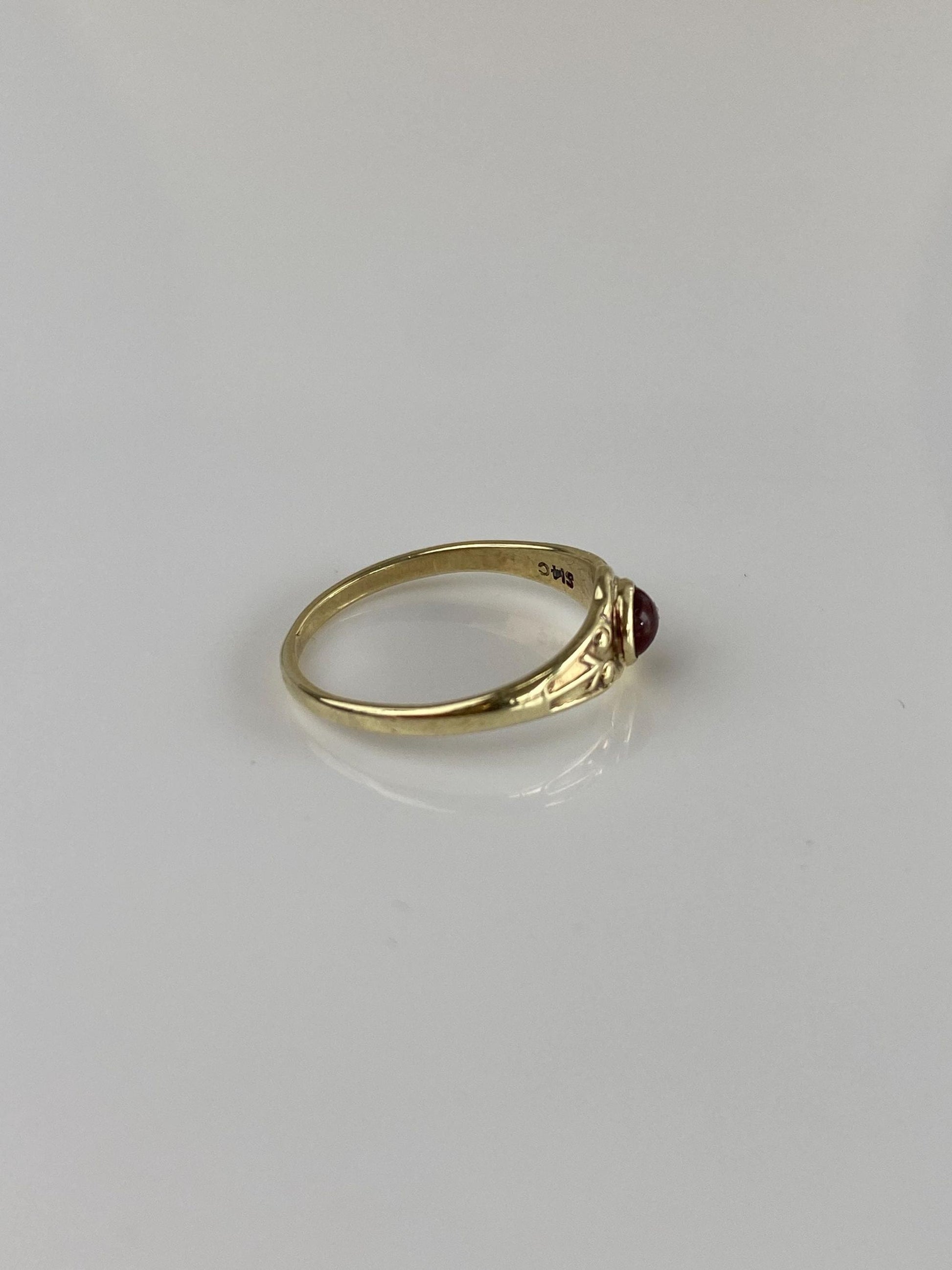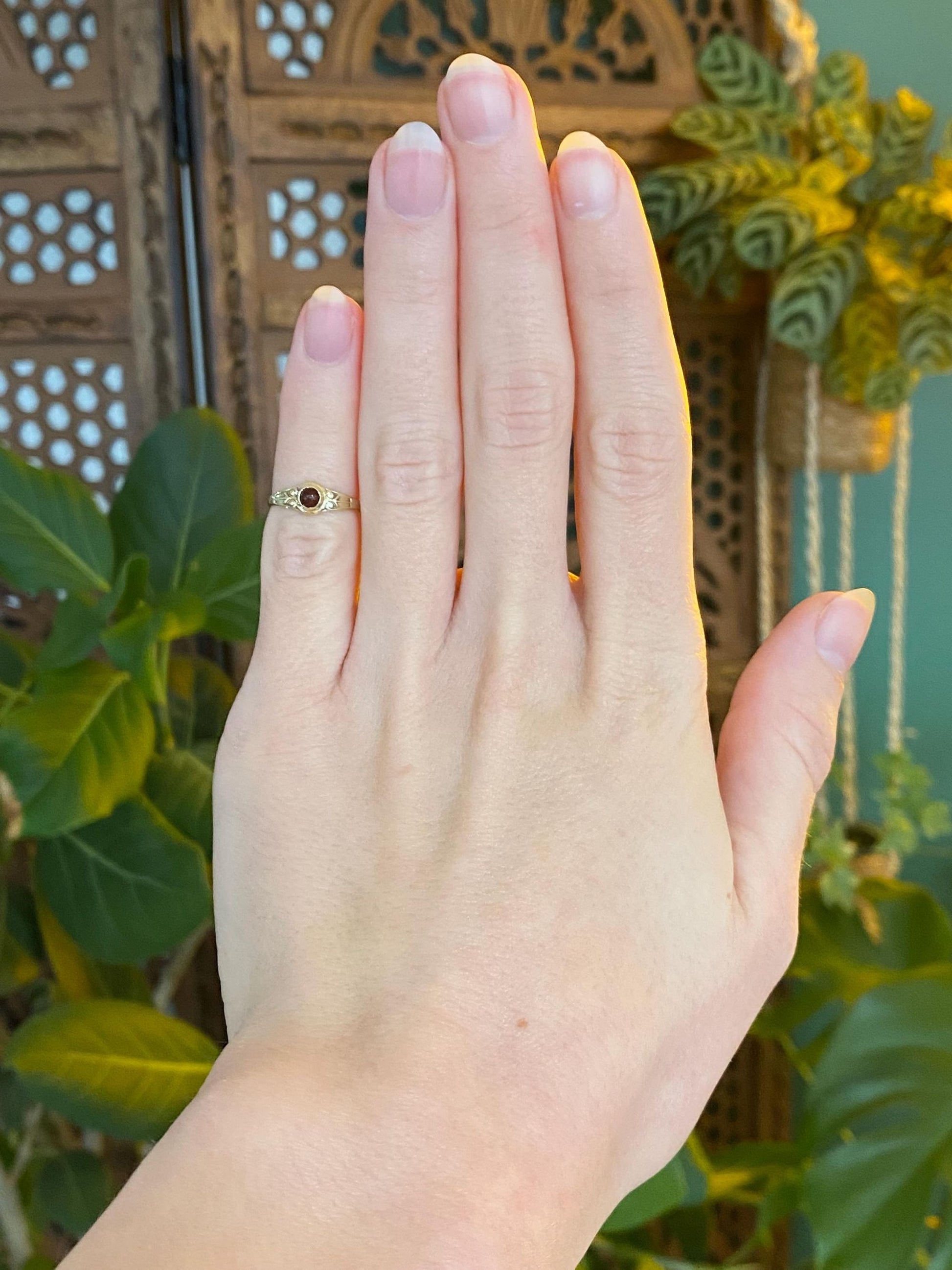 Vintage Solid 14k Yellow Gold Red Stone Design Baby Ring Band - Size 2