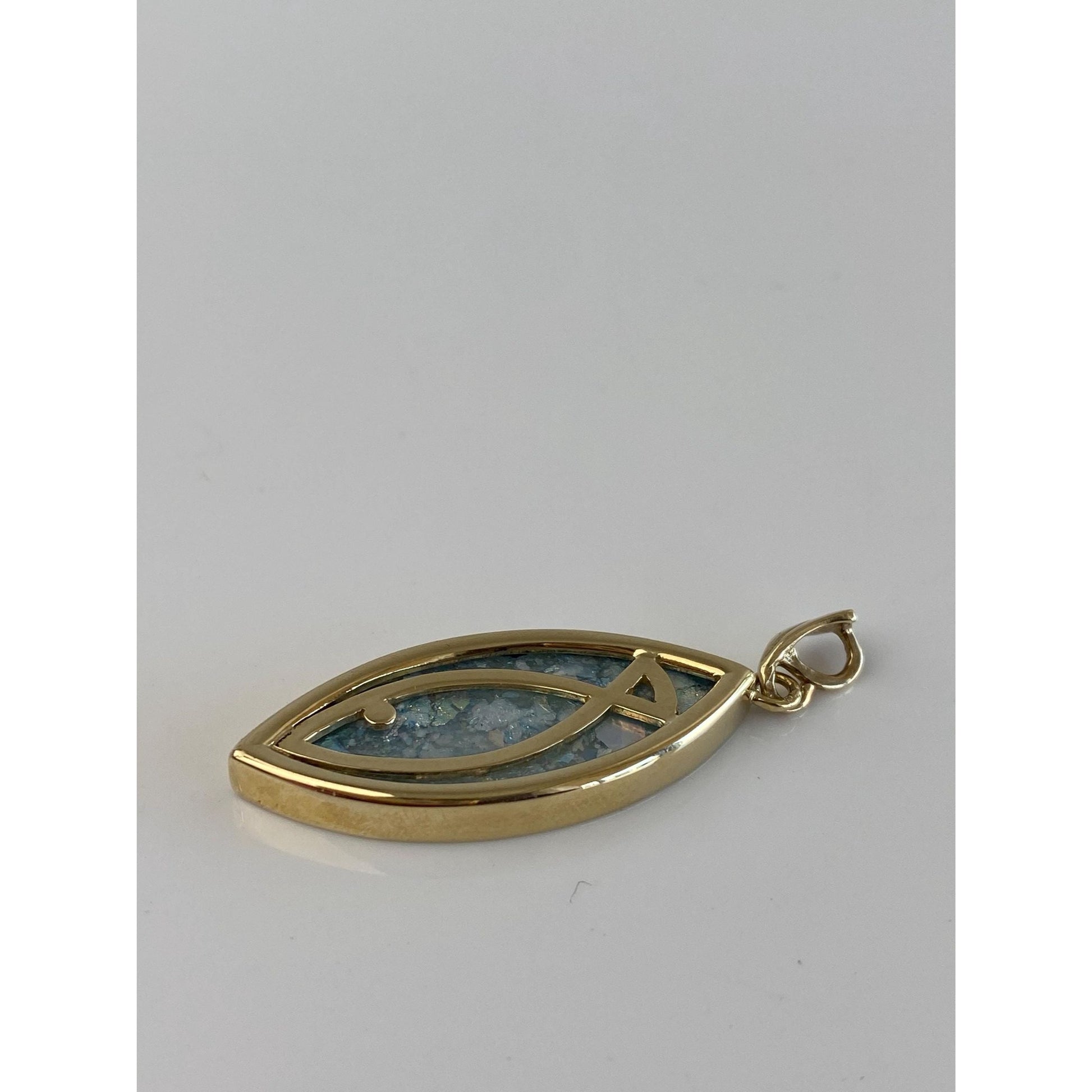 Vintage Solid 14k Yellow Gold Roman Glass Religious Fish Charm