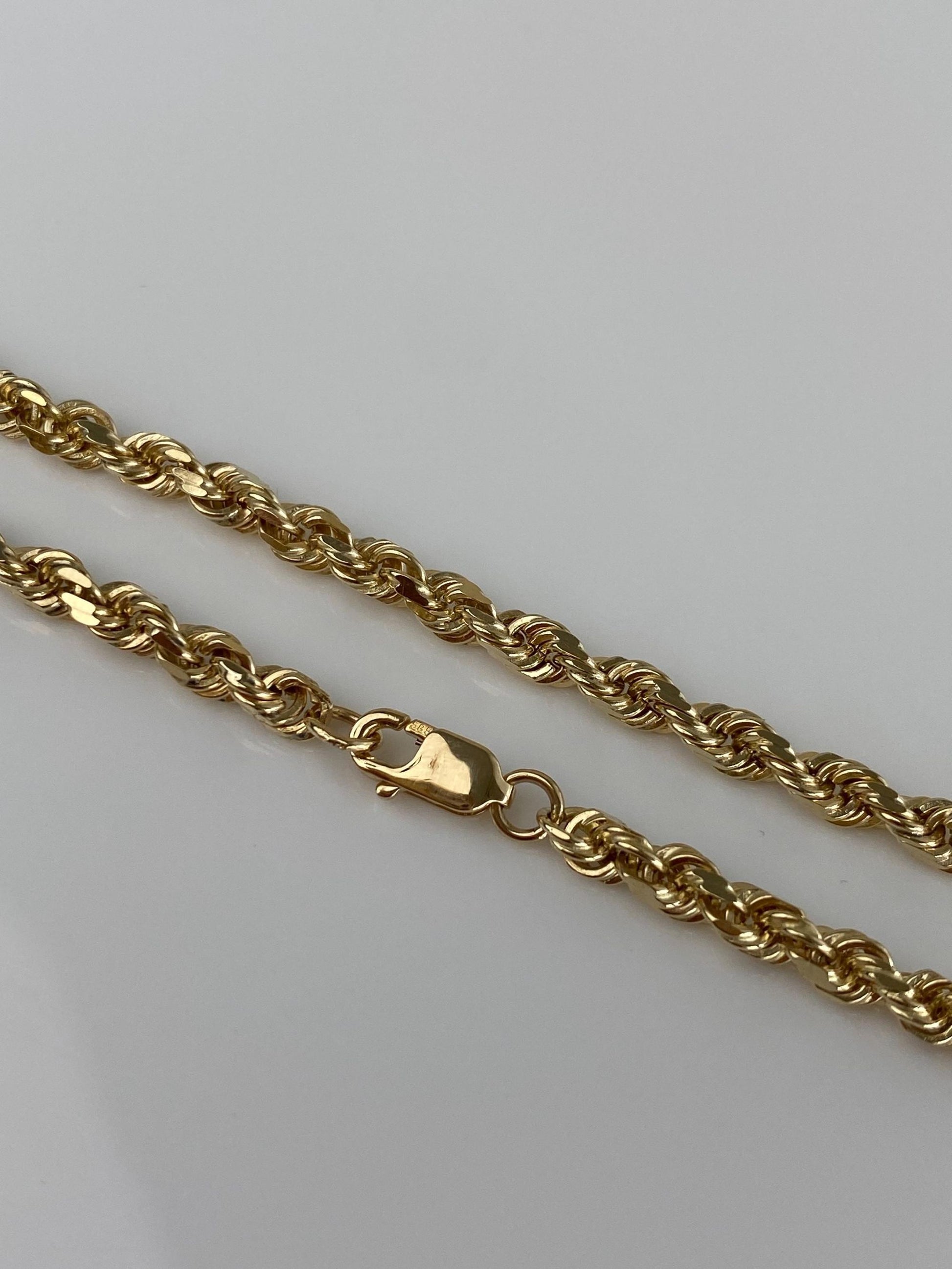 Vintage Solid 14k Yellow Gold Rope Chain Bracelet - 7 inches