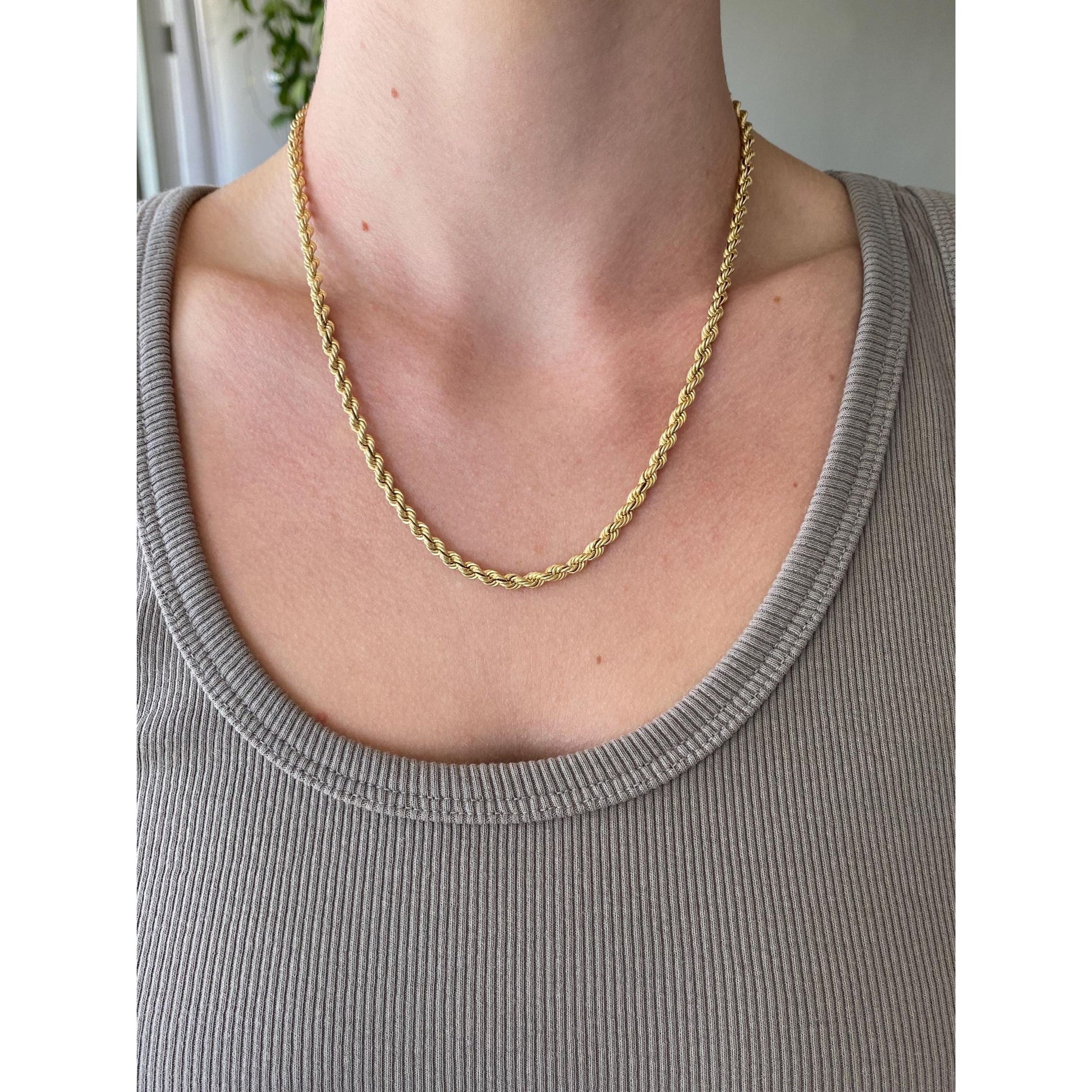 Vintage Solid 14k Yellow Gold Rope Chain Necklace - 18.5 inches