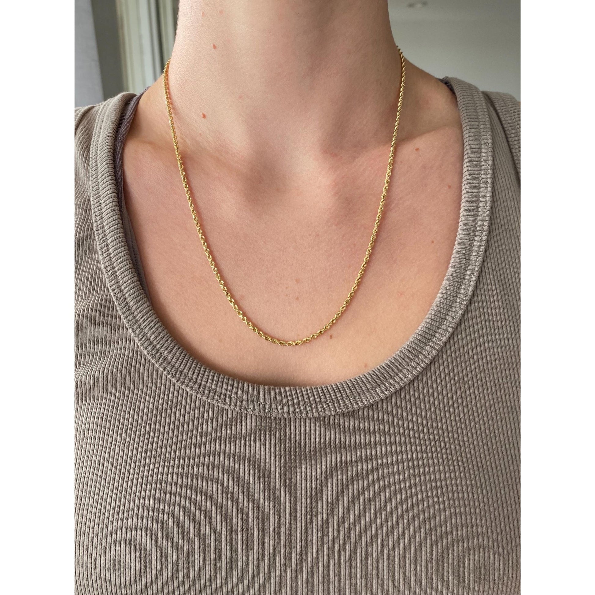 Vintage Solid 14k Yellow Gold Rope Chain Necklace - 19.75 inches