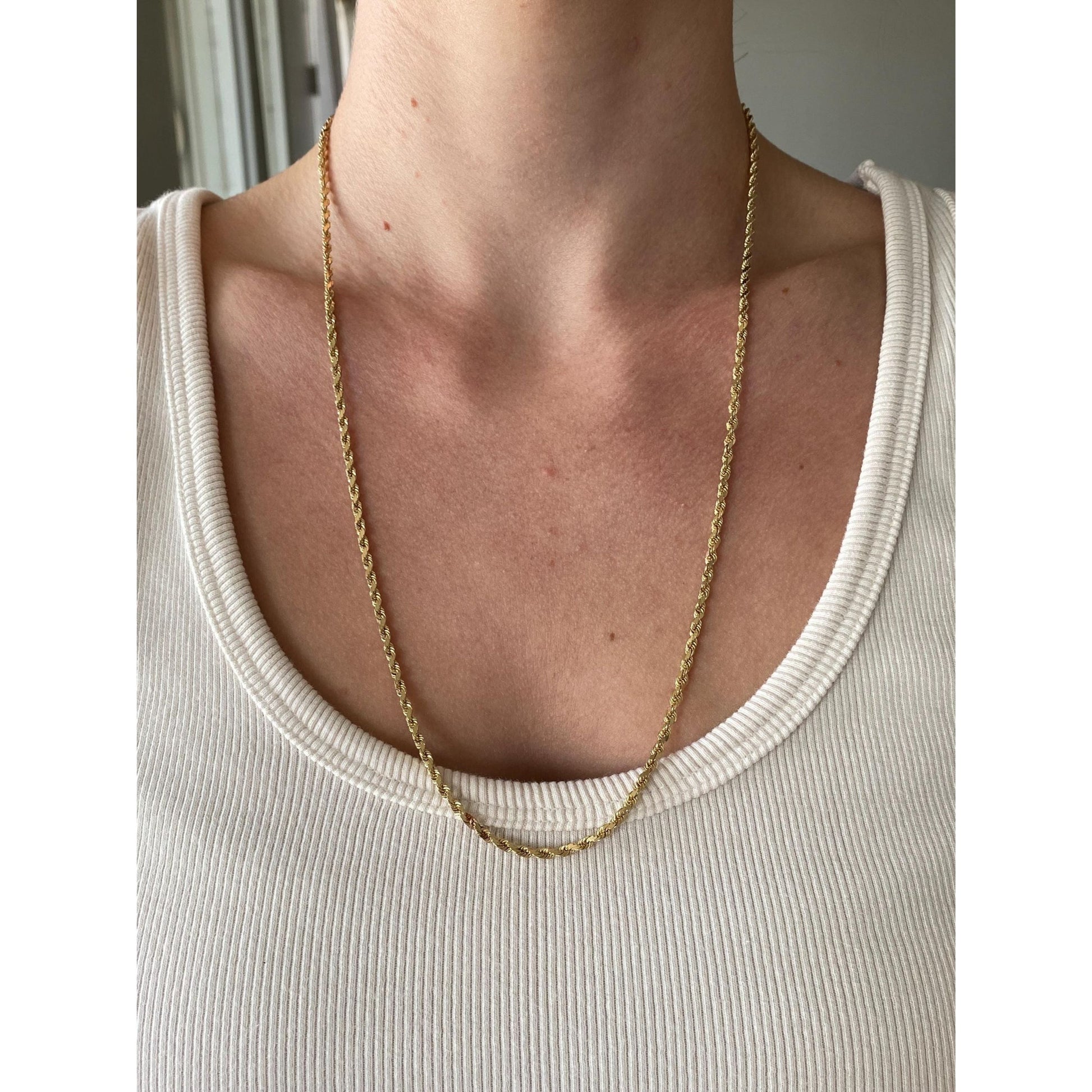Vintage Solid 14k Yellow Gold Rope Chain Necklace - 24 inches