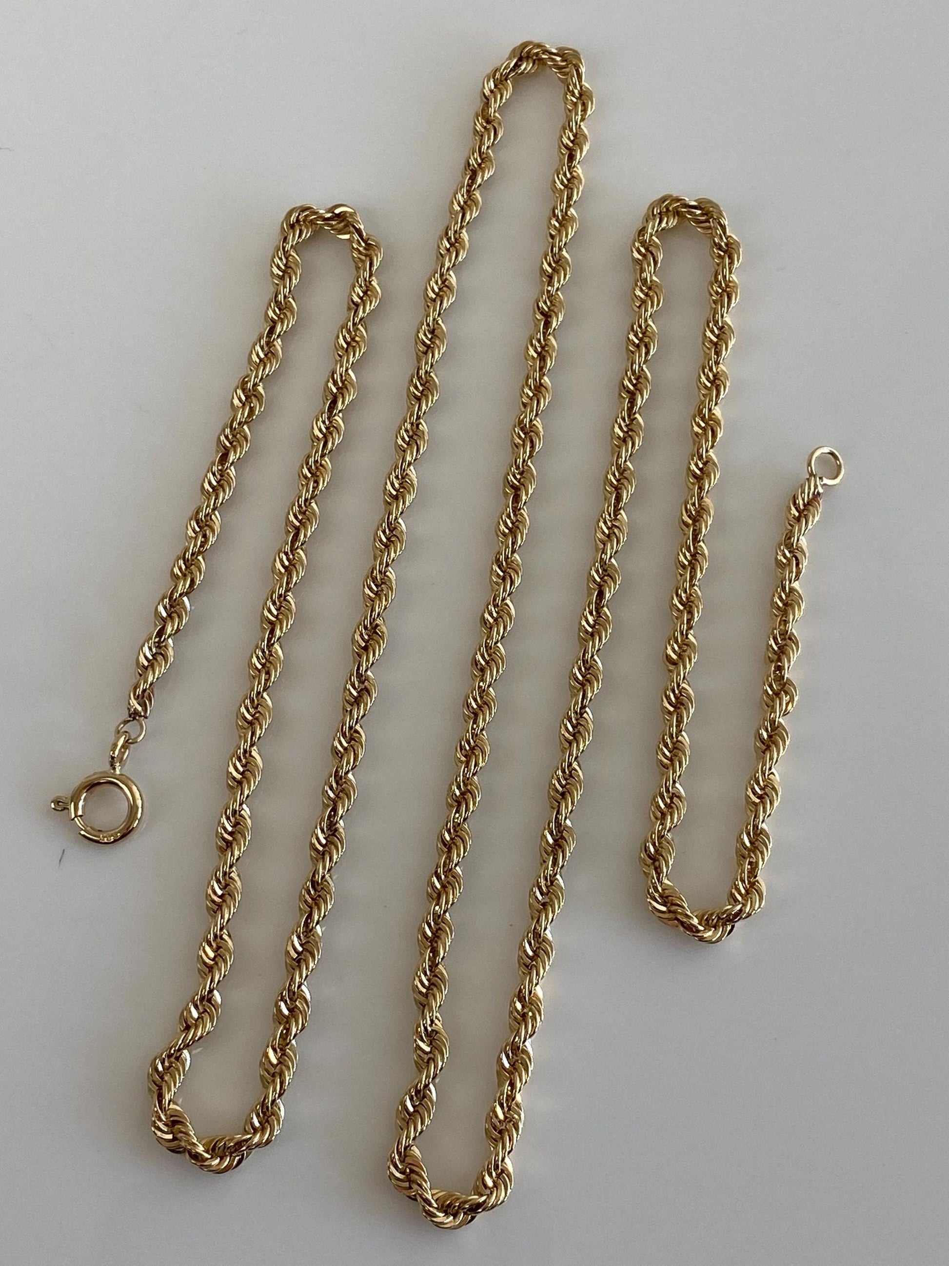 Vintage Solid 14k Yellow Gold Rope Chain Necklace - 25 inches