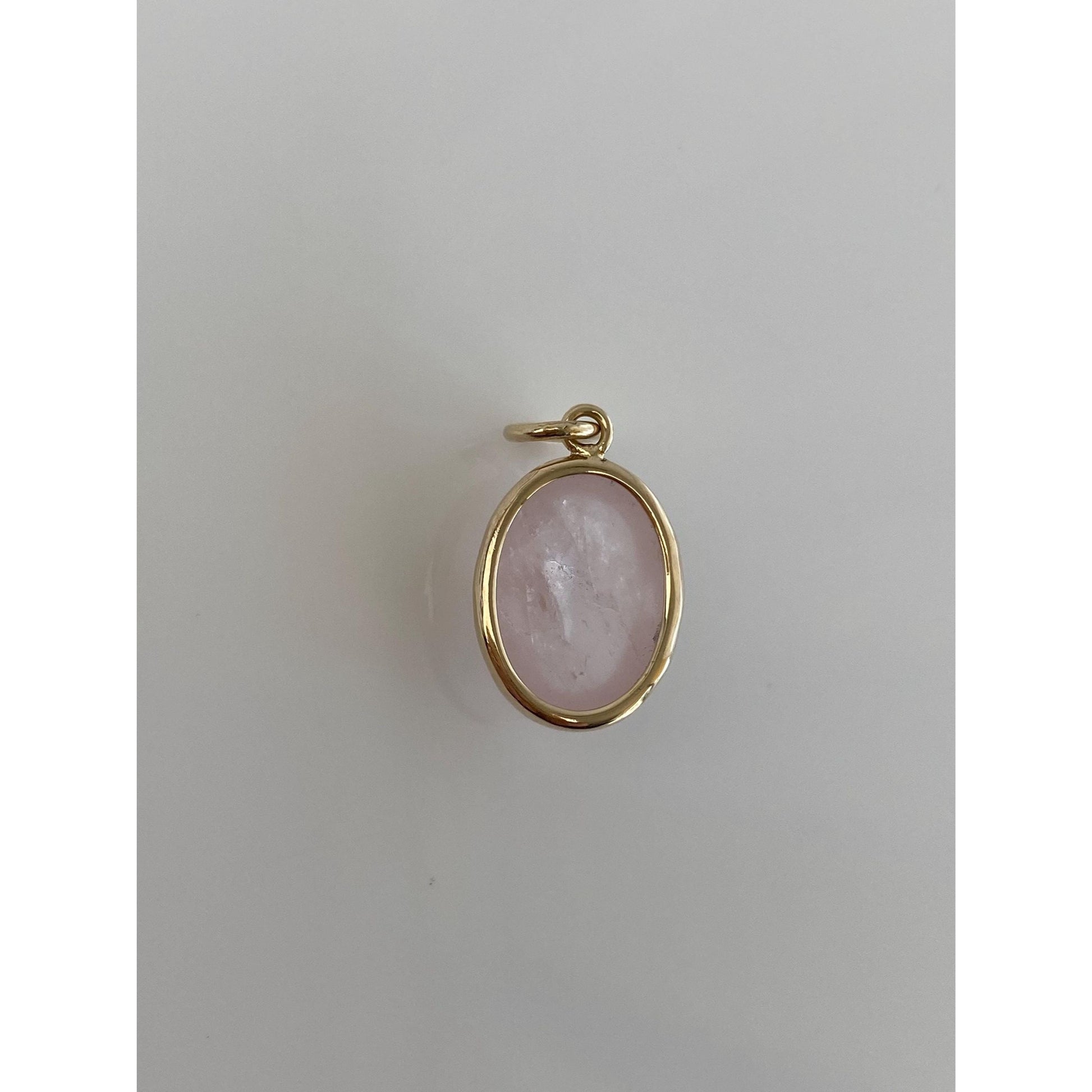 Vintage Solid 14k Yellow Gold Rose Quartz Cabochon Charm