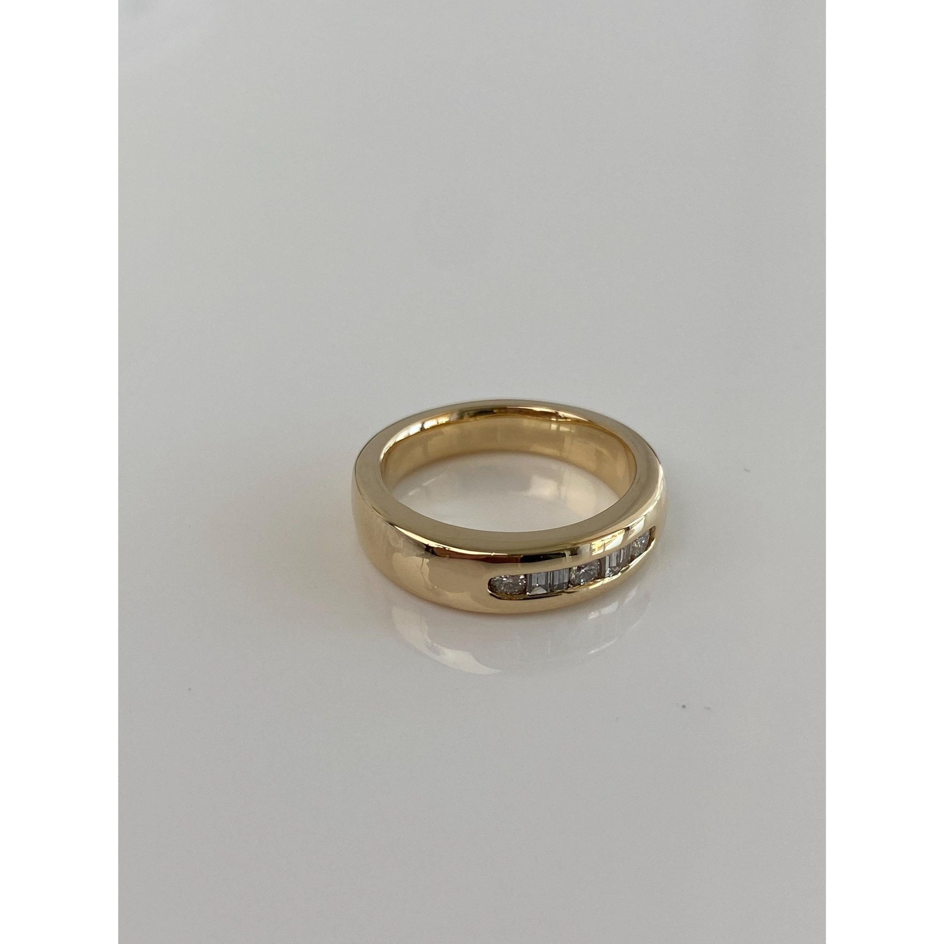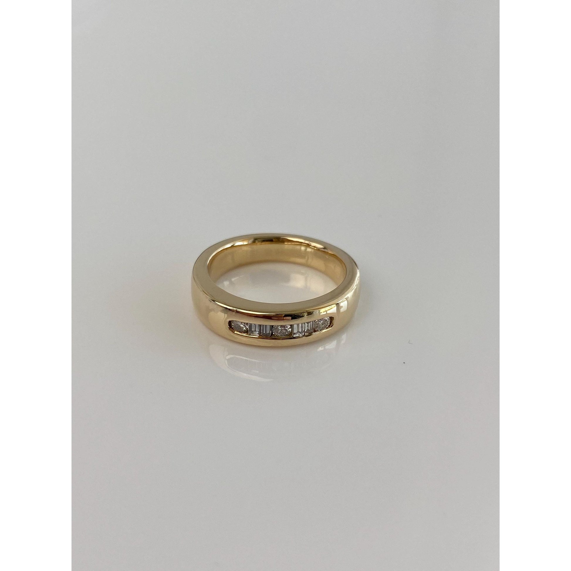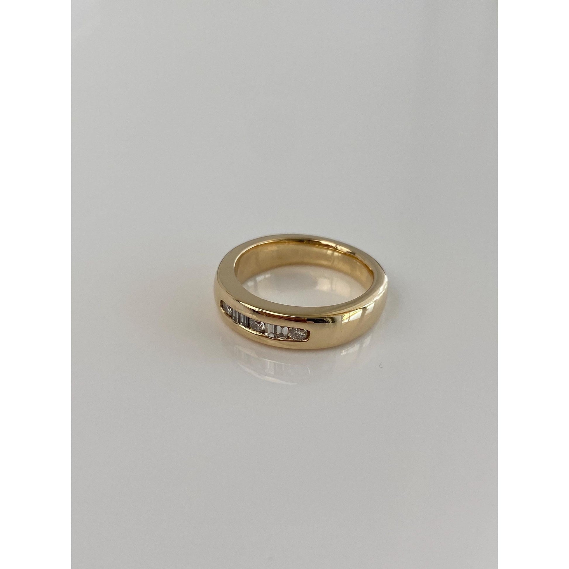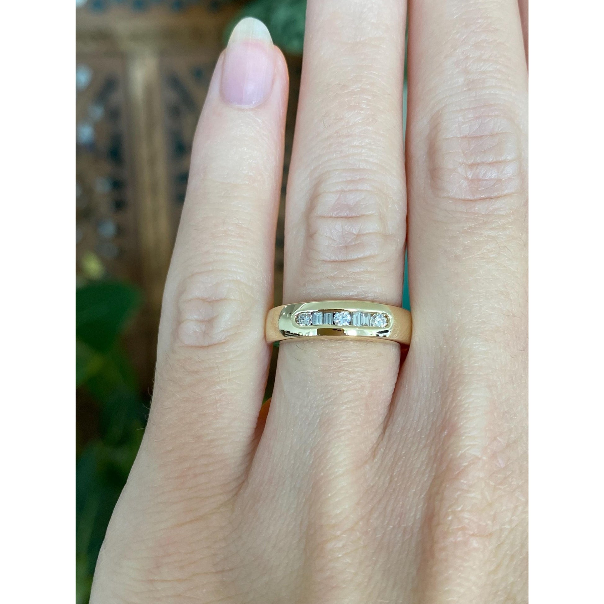 Vintage Solid 14k Yellow Gold Round & Baguette Diamond Ring Band - Size 5.25