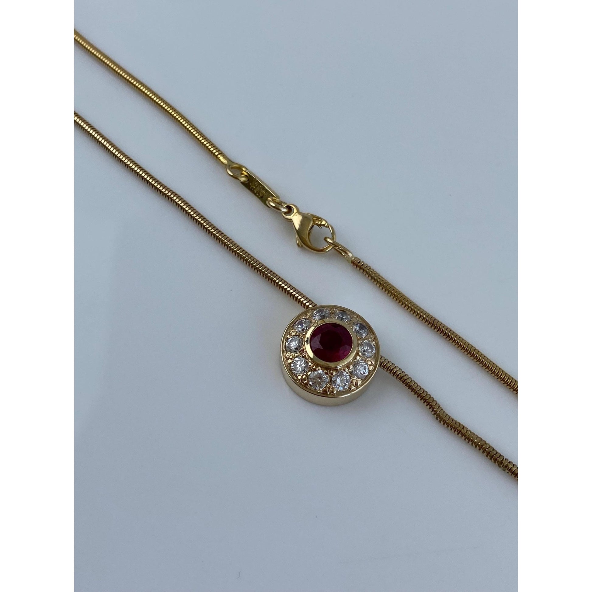 Vintage Solid 14k Yellow Gold Ruby Clear Cubic Zirconia Halo Snake Chain Necklace - 16.25 inches