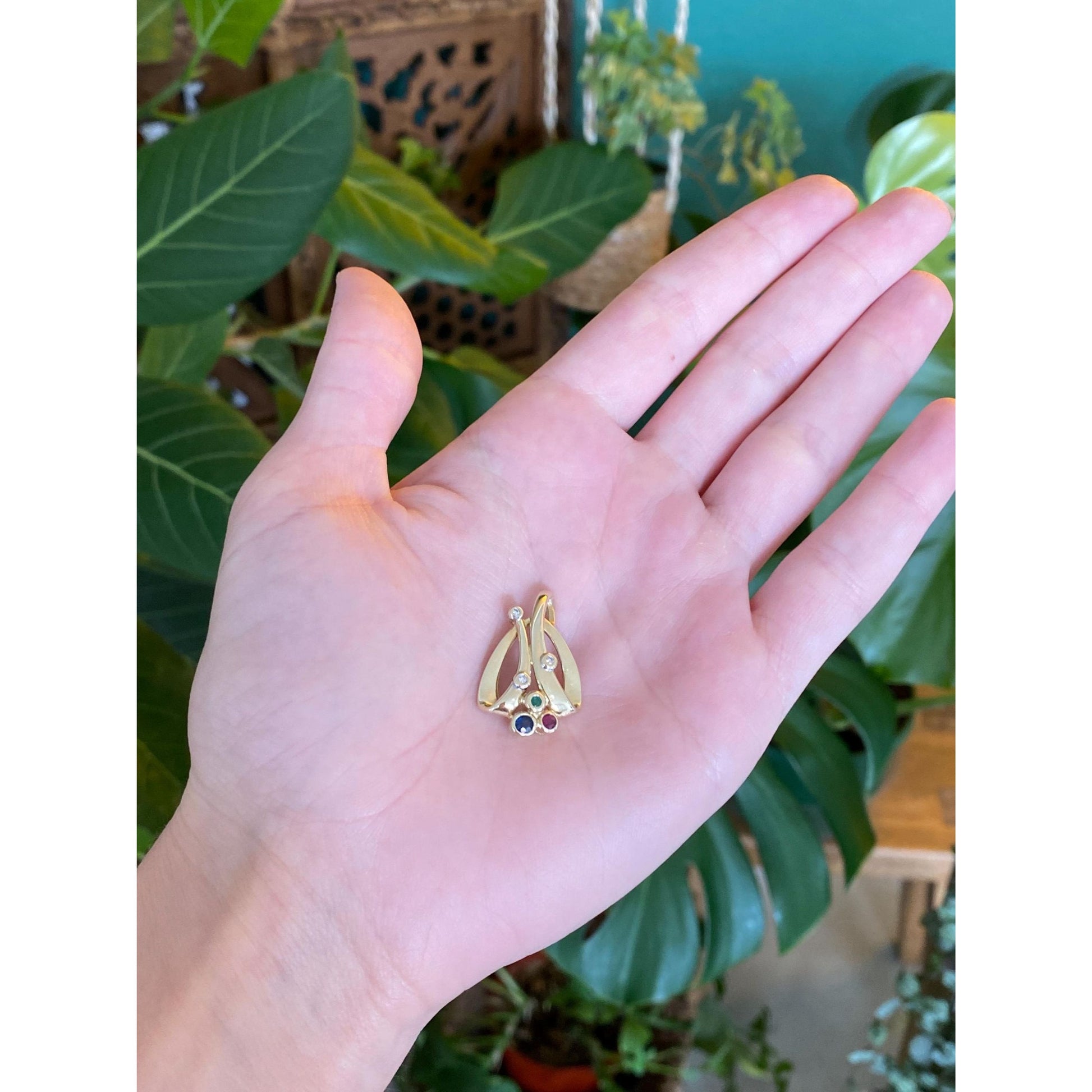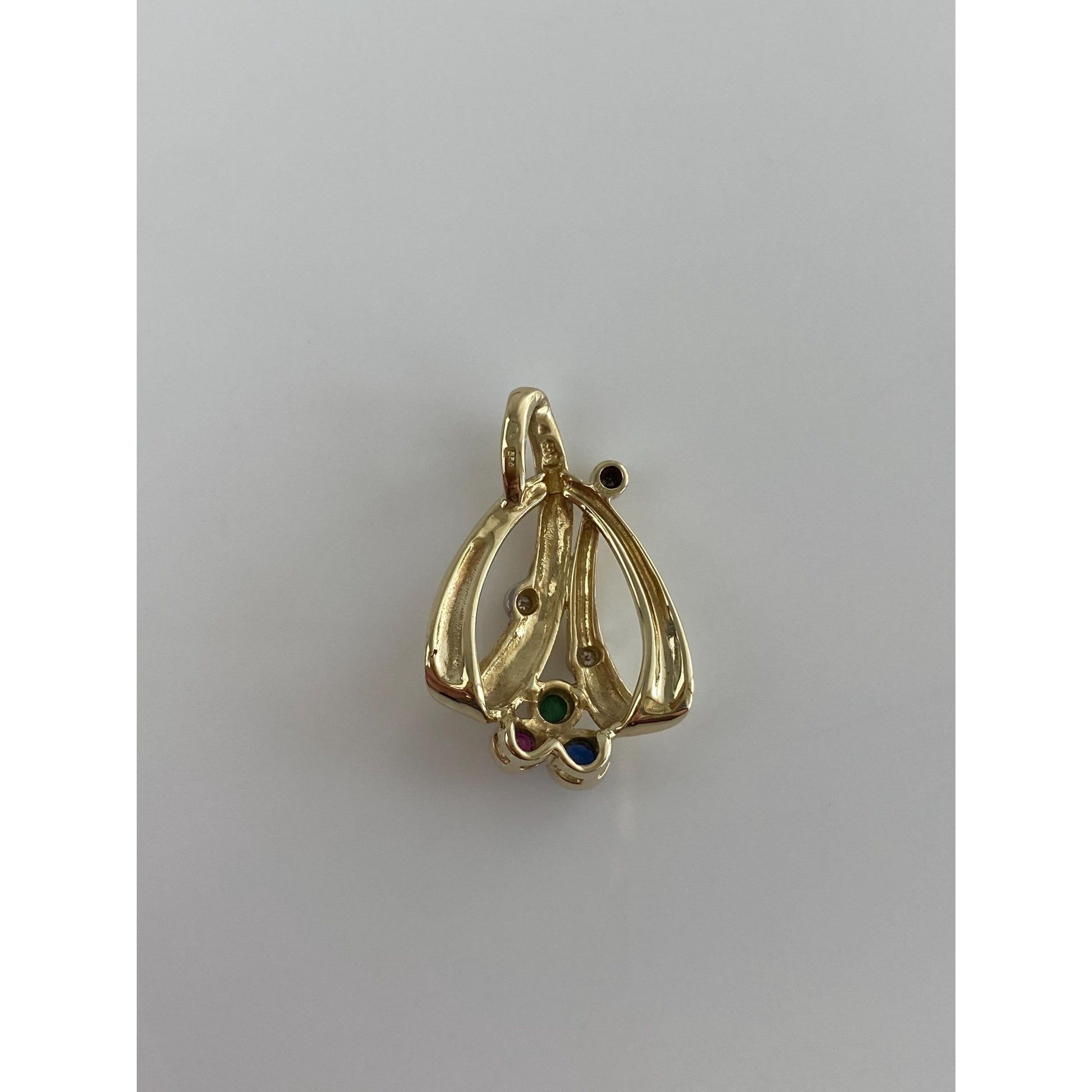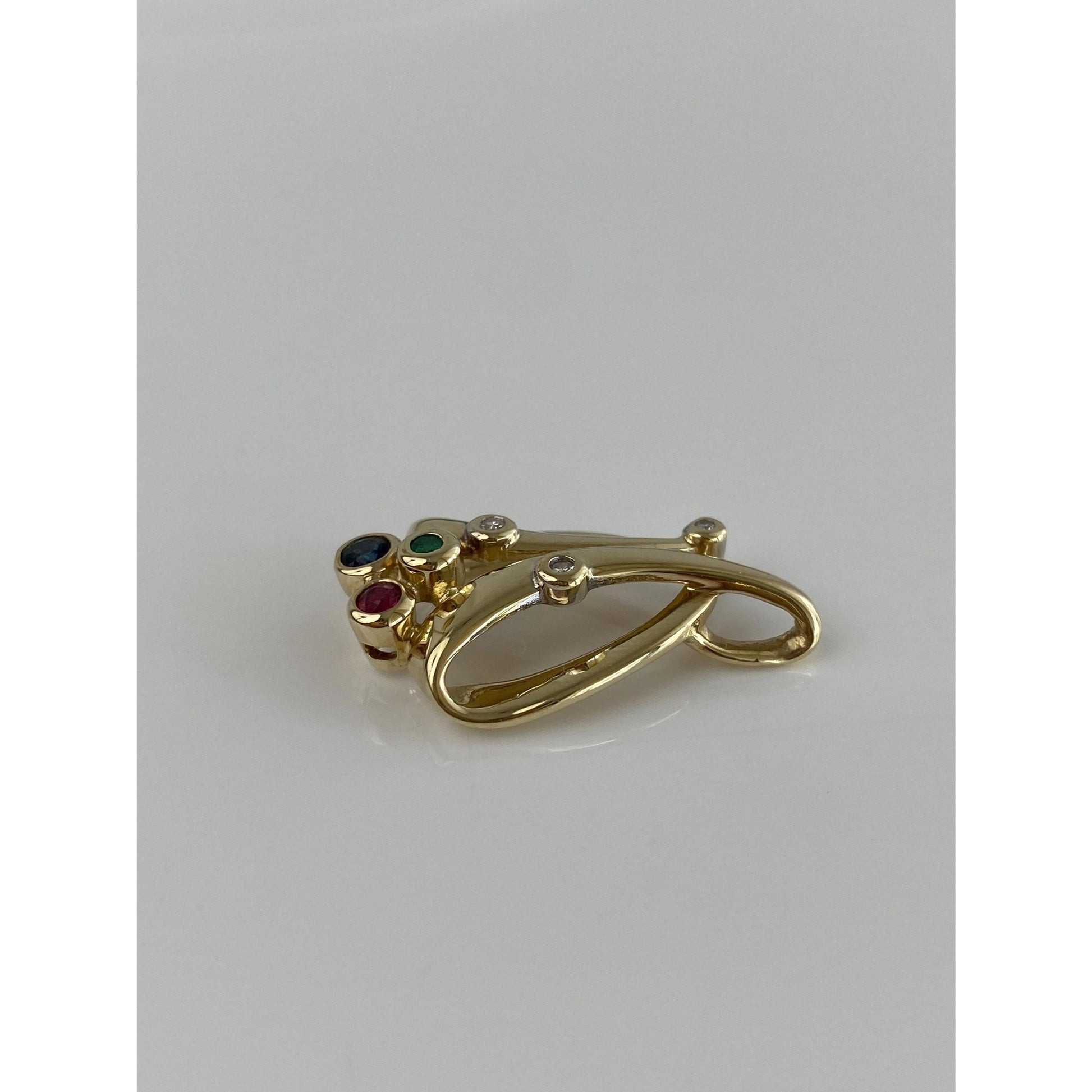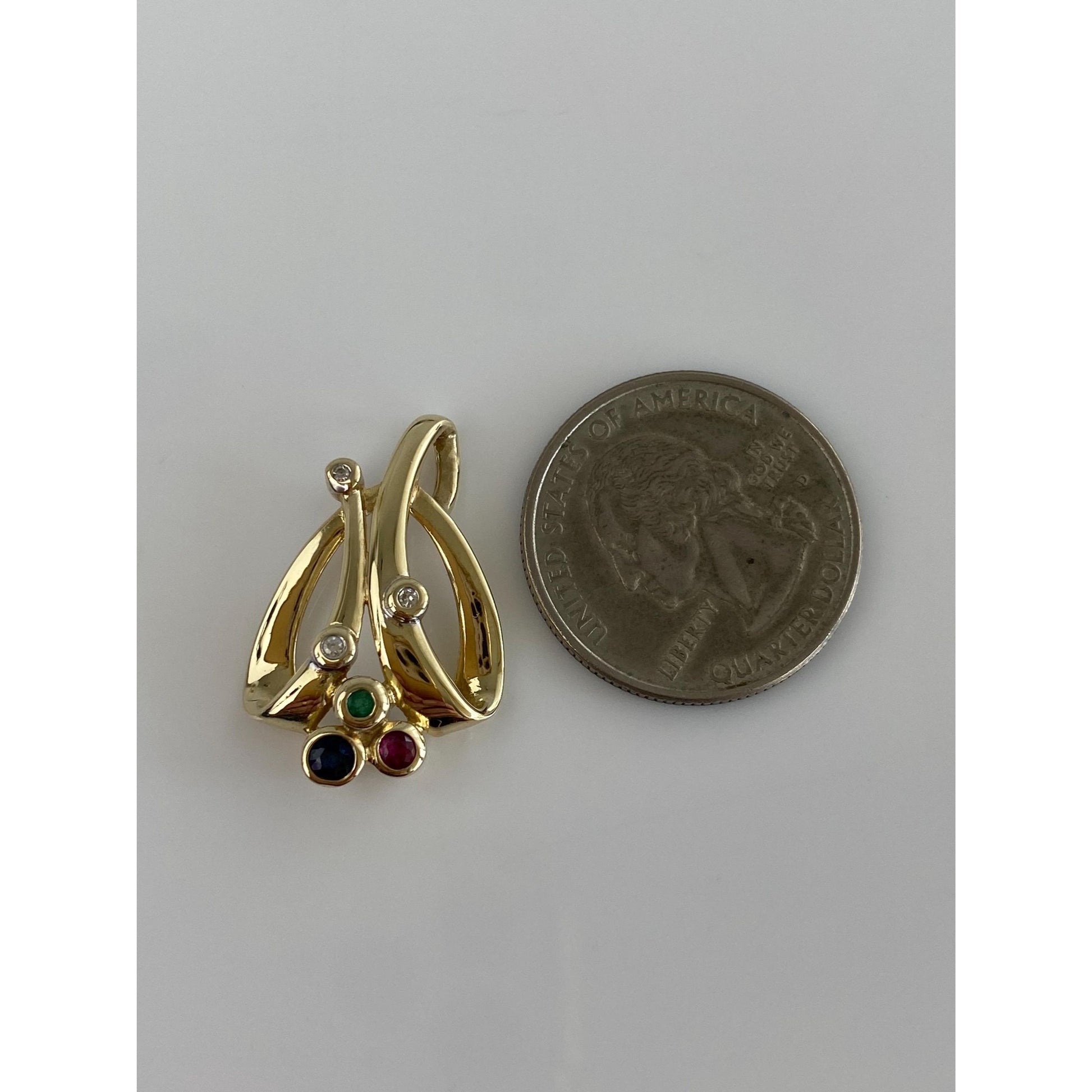 Vintage Solid 14k Yellow Gold Ruby Diamond Sapphire Emerald Slide Charm