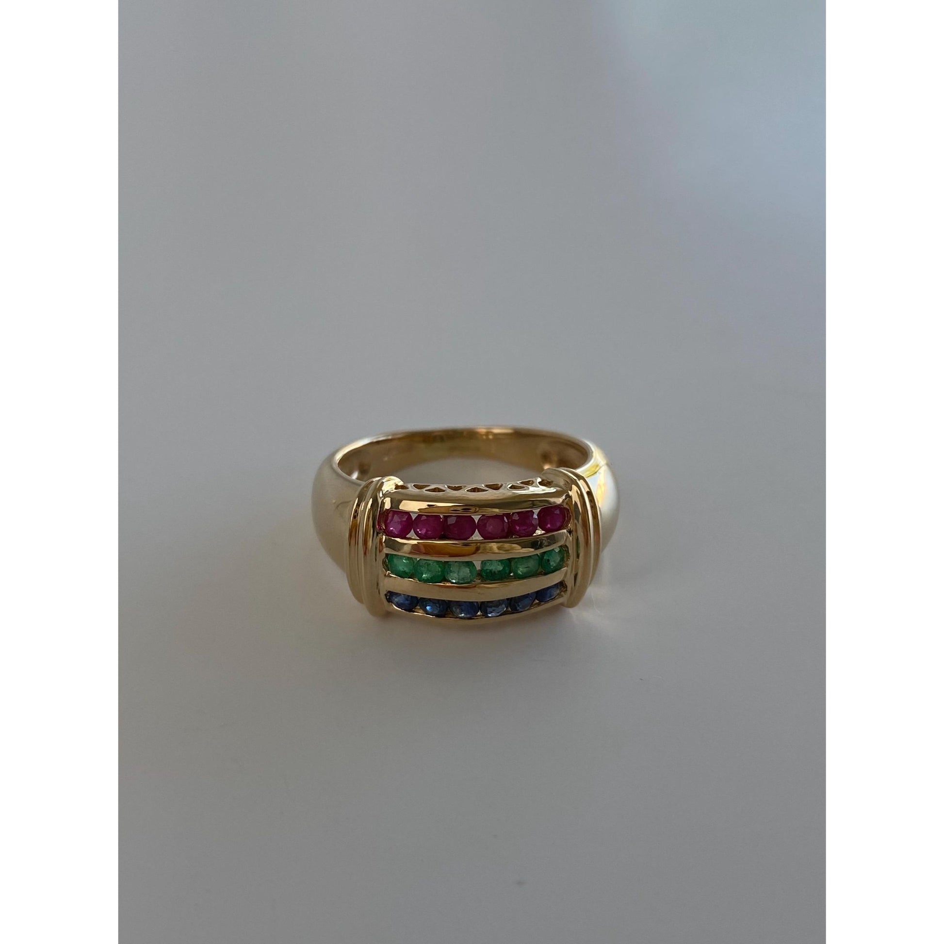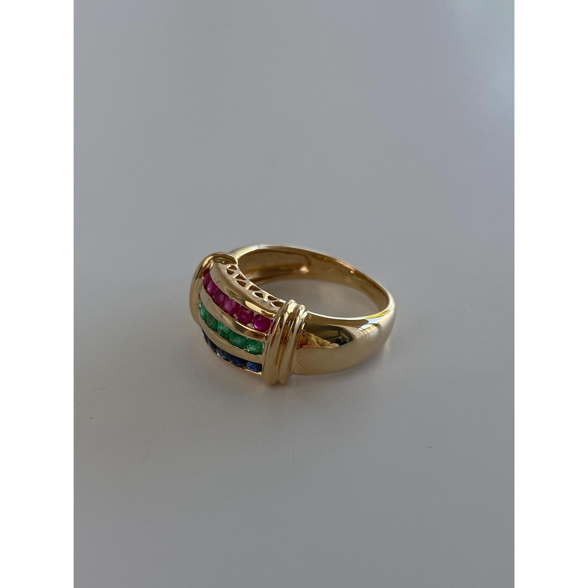 Vintage Solid 14k Yellow Gold Ruby Emerald Sapphire Ring Band - Size 5.75