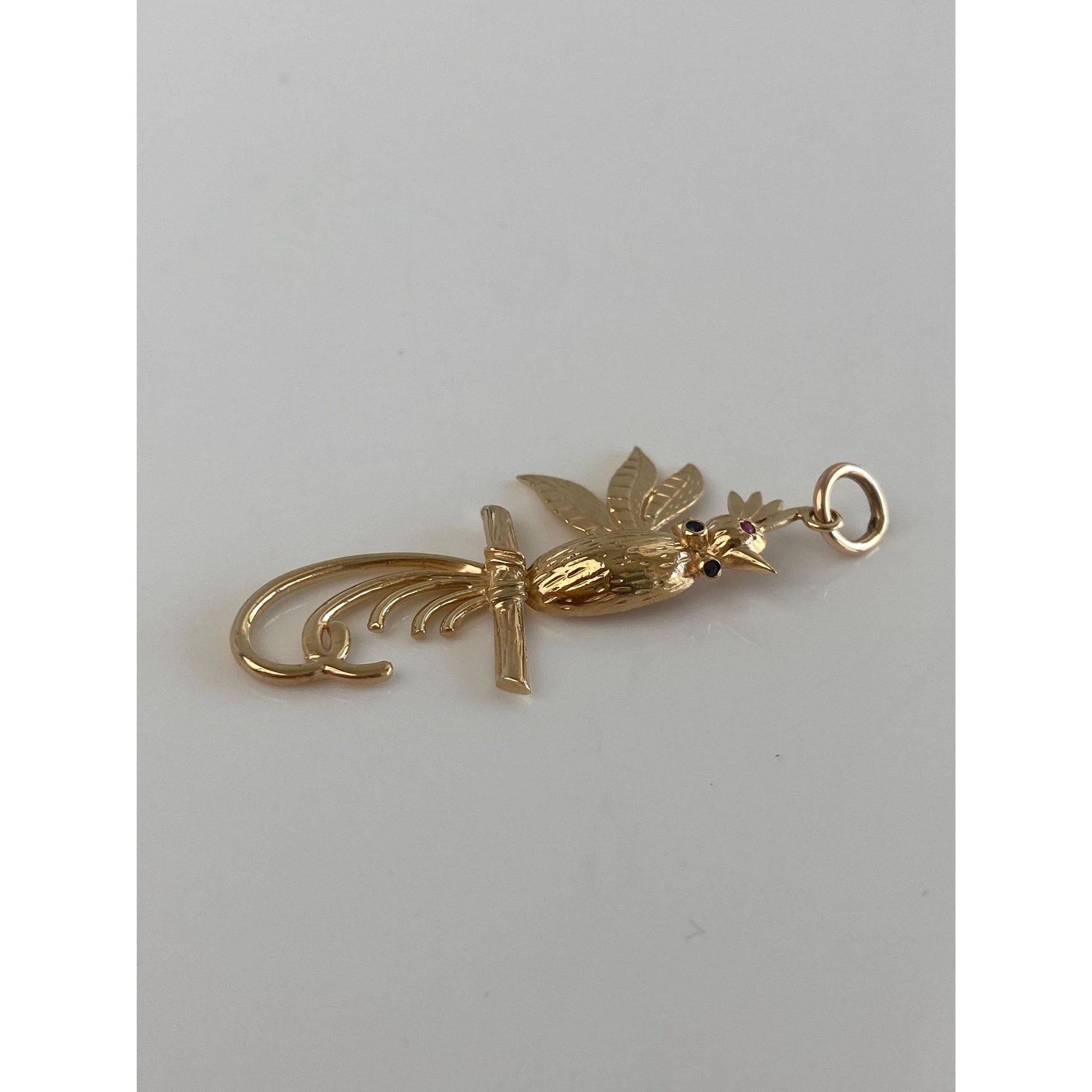 Vintage Solid 14k Yellow Gold Ruby Sapphire Bird Charm