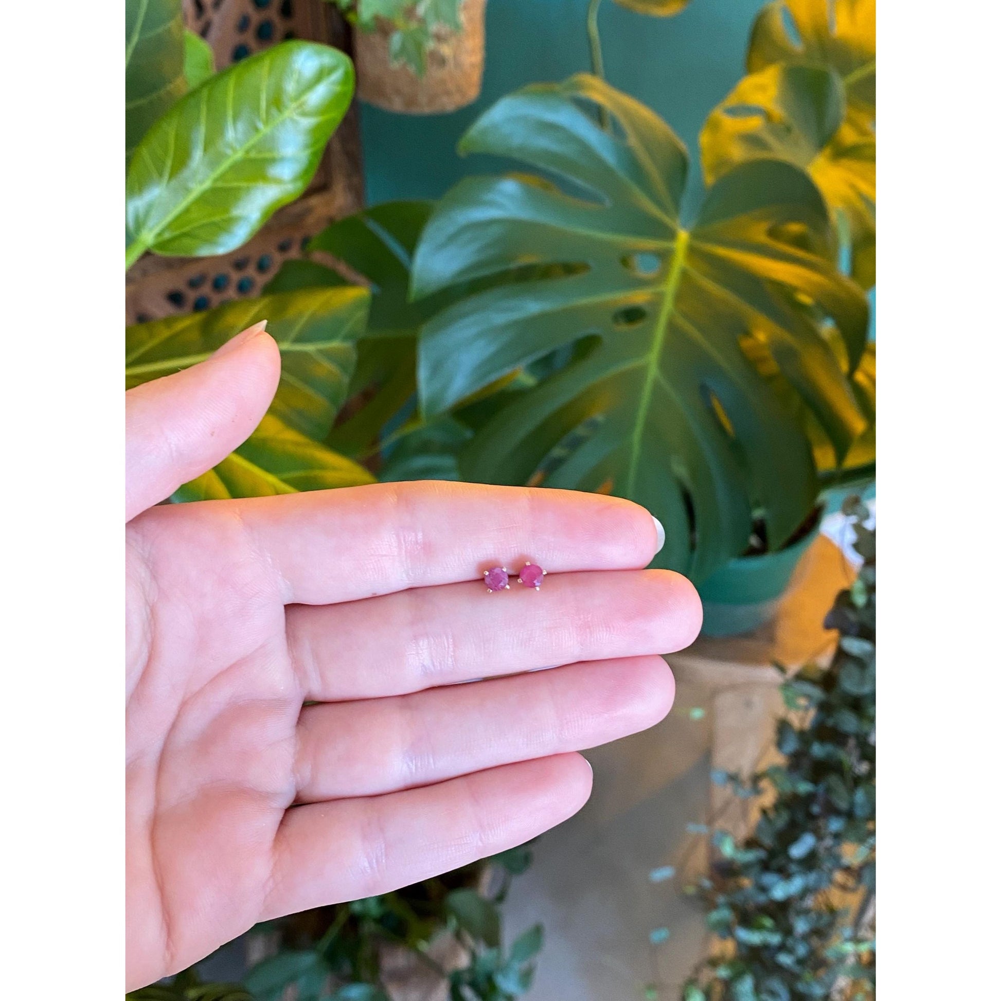Vintage Solid 14k Yellow Gold Ruby Stud Earrings