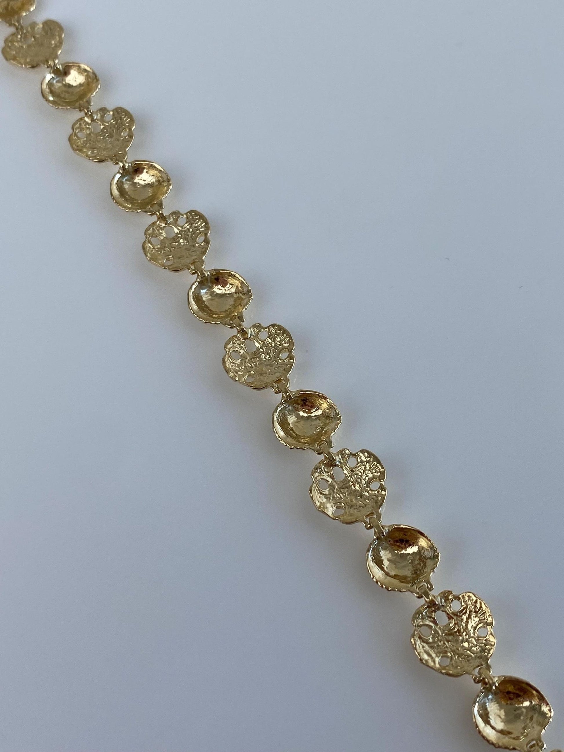 Vintage Solid 14k Yellow Gold Sand Dollar Star Fish Link Bracelet - 7 inches