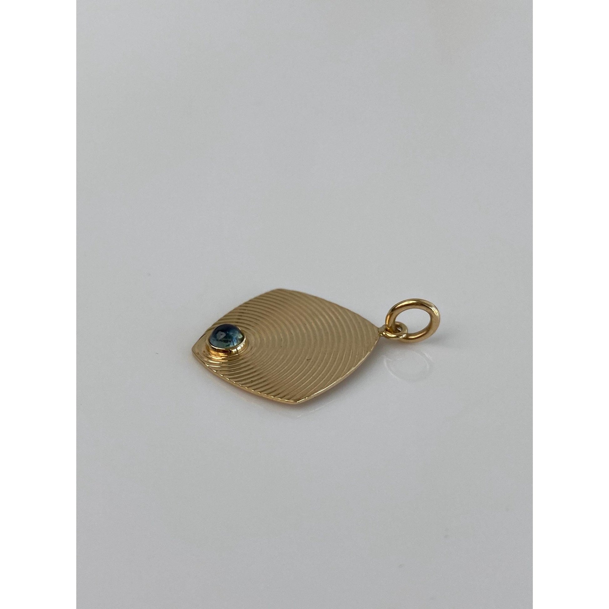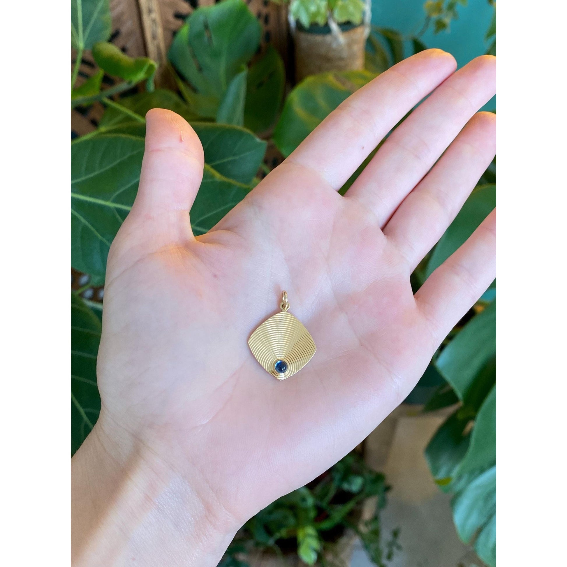 Vintage Solid 14k Yellow Gold Sapphire Cabochon Textured Cufflink Conversion Charm