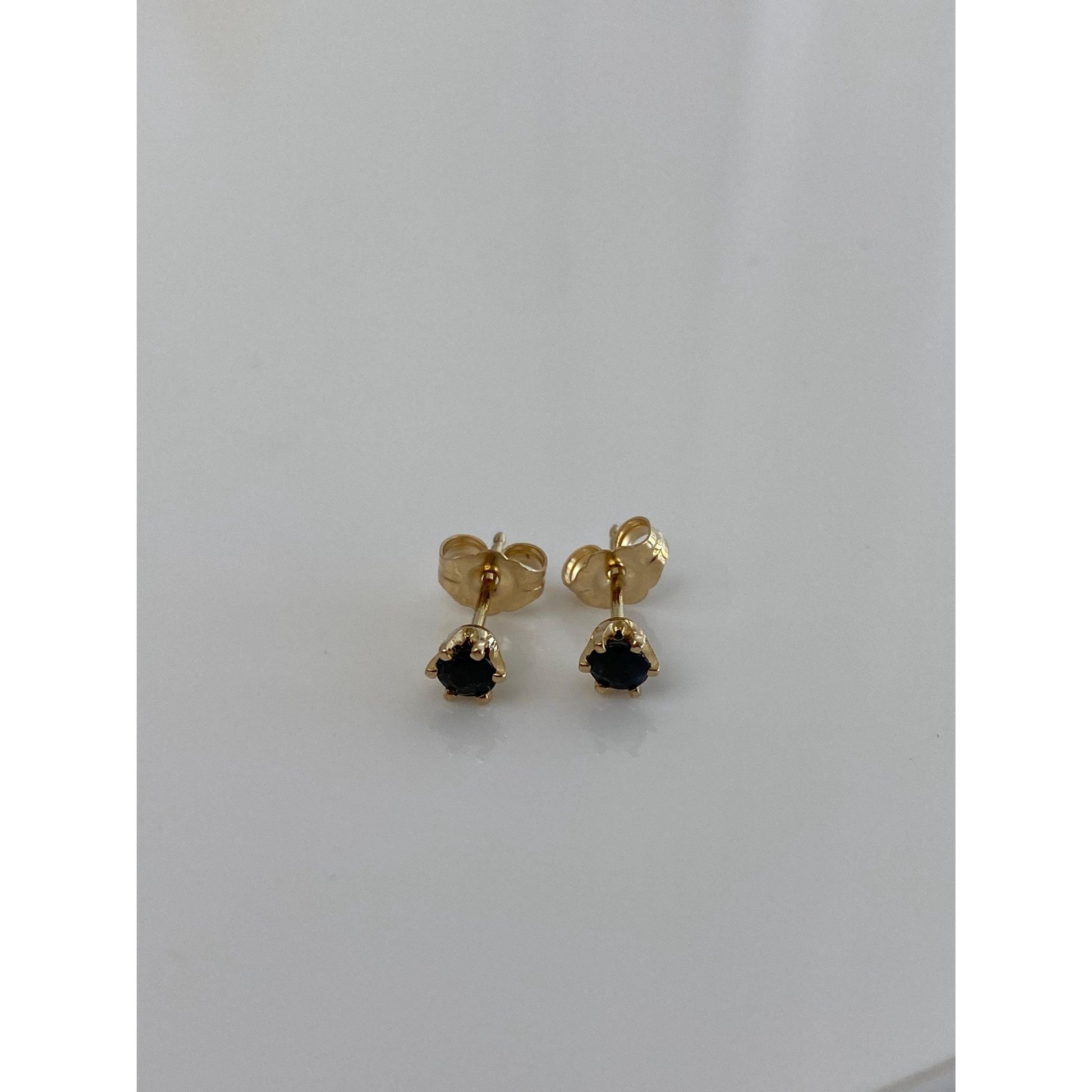 Vintage Solid 14k Yellow Gold Sapphire Stud Earrings