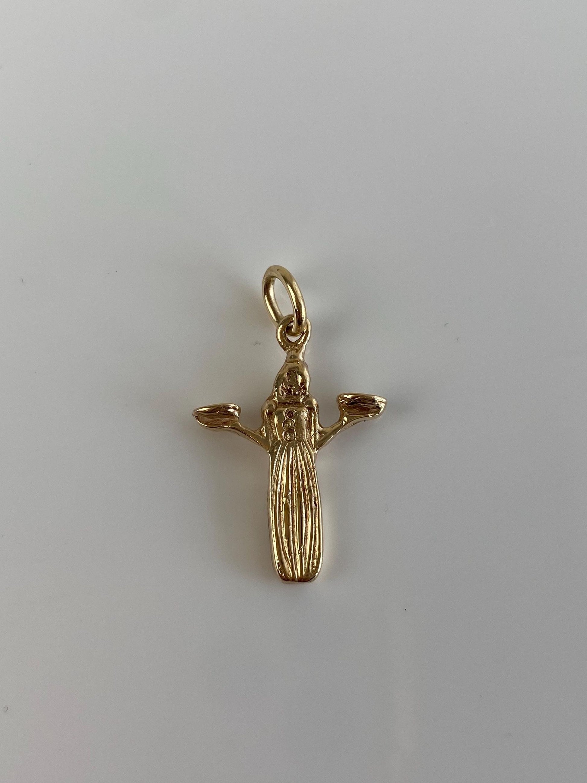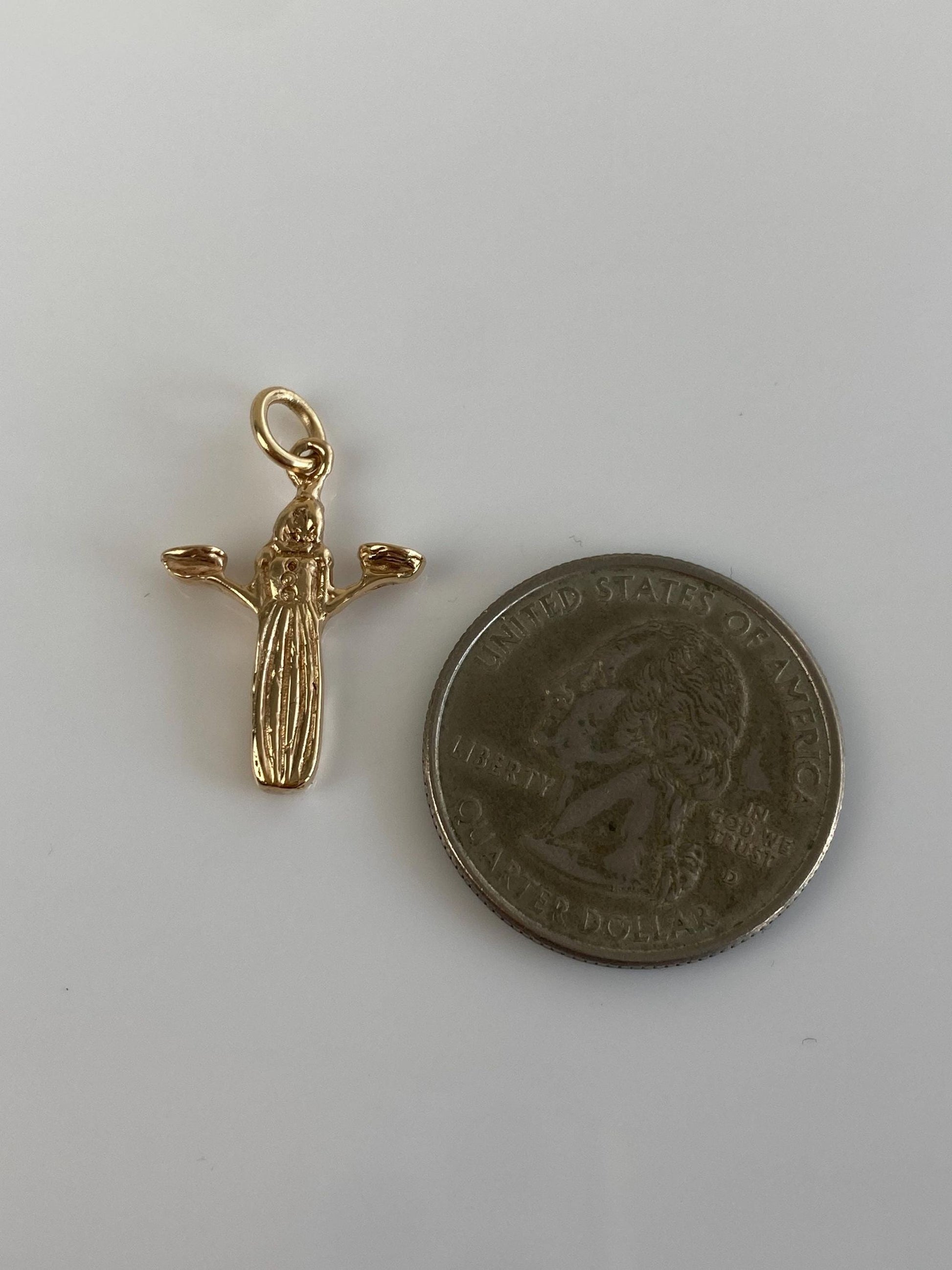 Vintage Solid 14k Yellow Gold Savannah Bird Girl Statue Charm