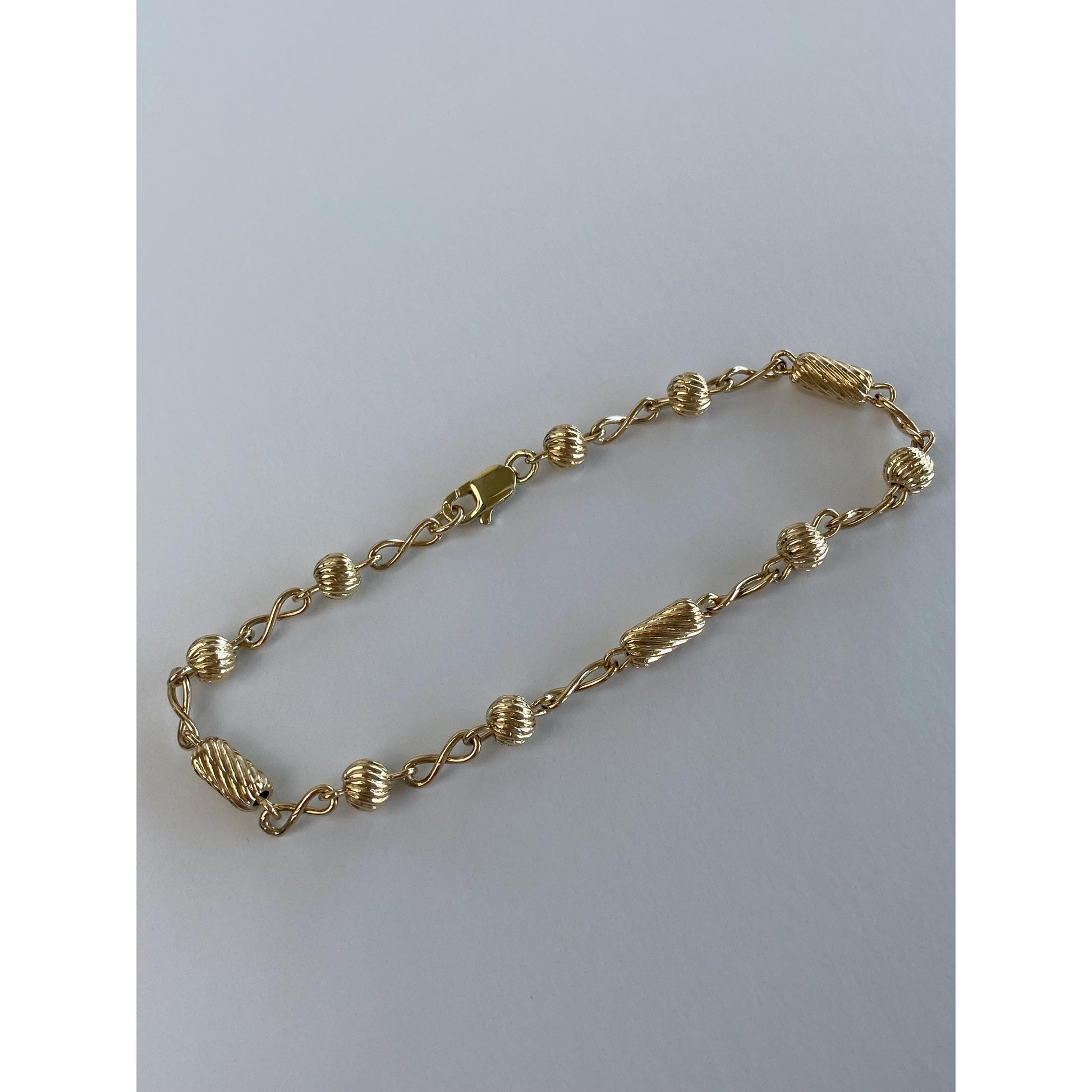Vintage Solid 14k Yellow Gold Scalloped Bead Link Bracelet - 7.5 inches