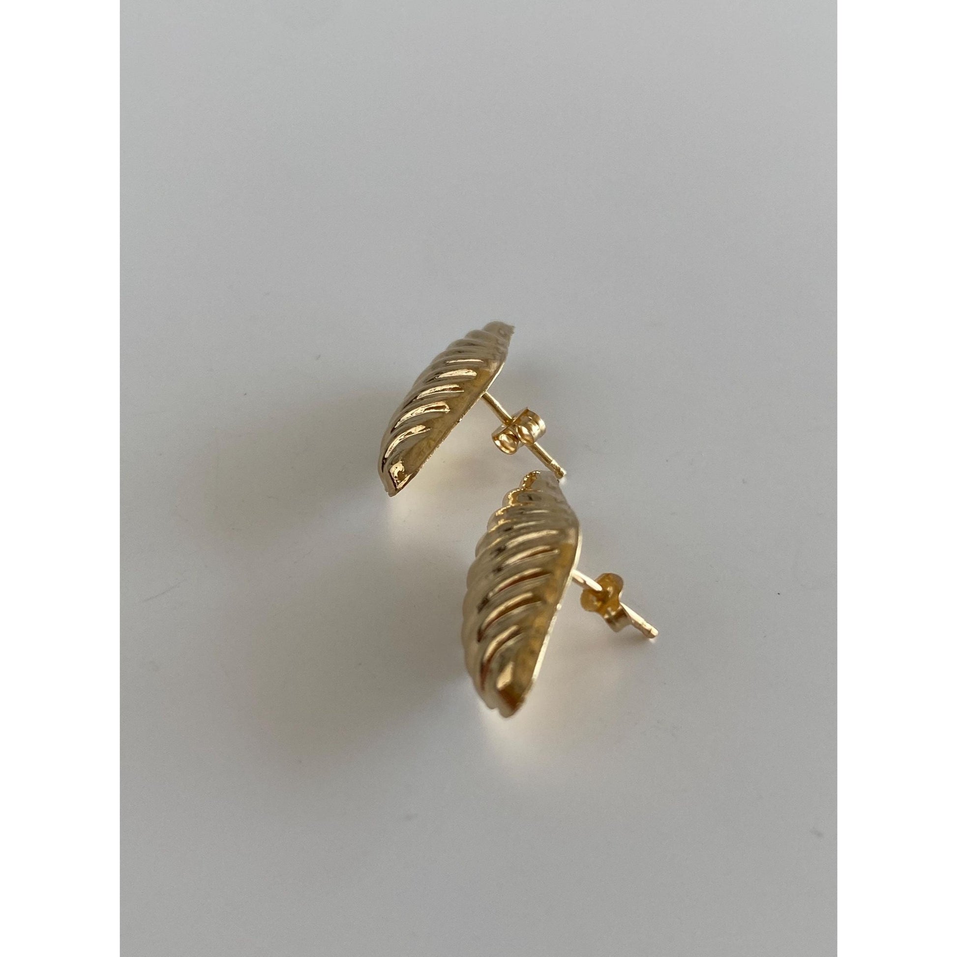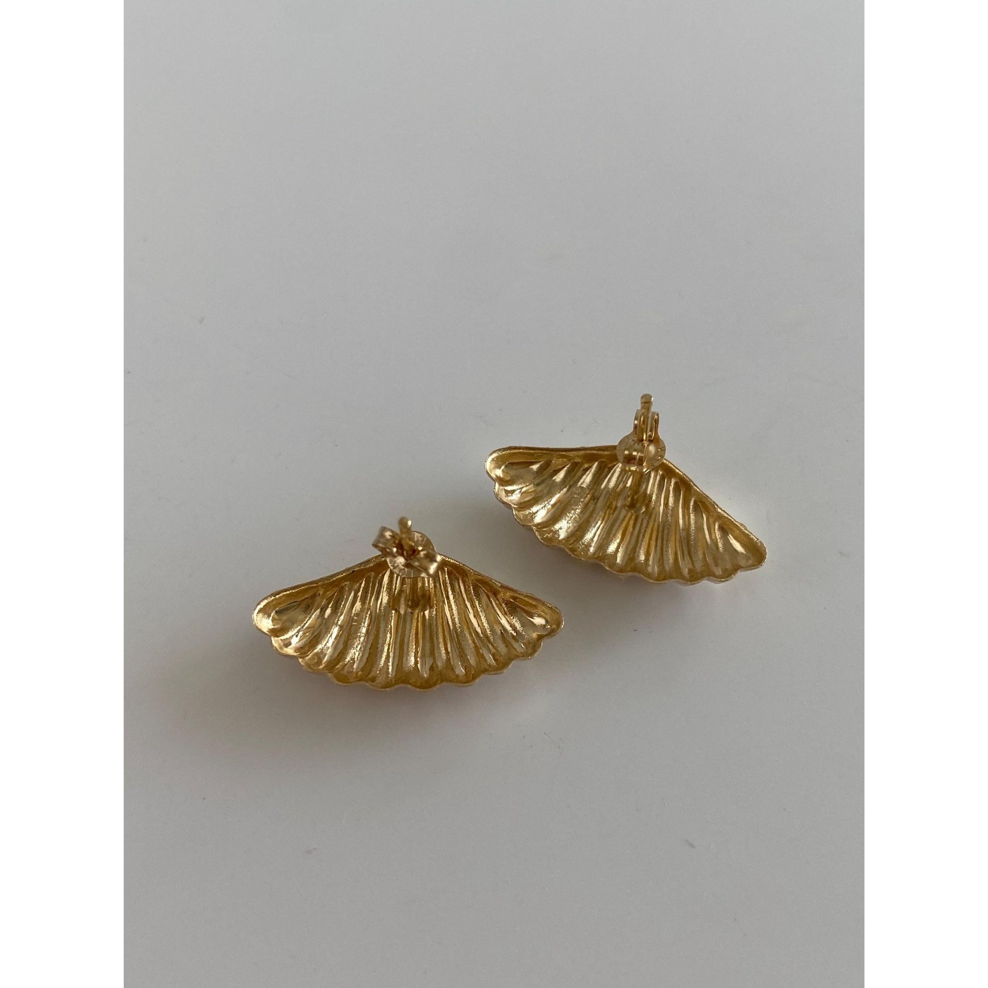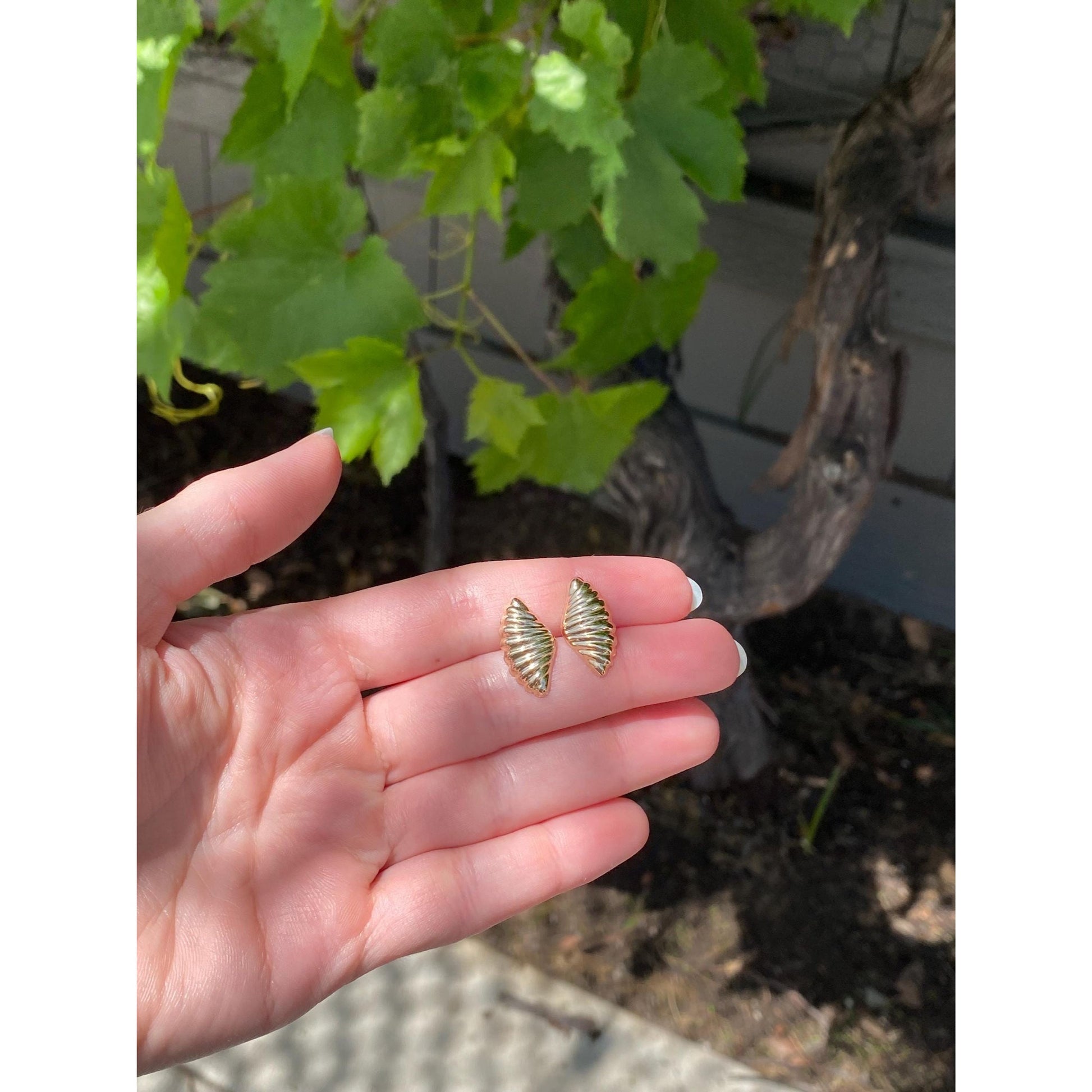 Vintage Solid 14k Yellow Gold Scalloped Fan Stud Earrings