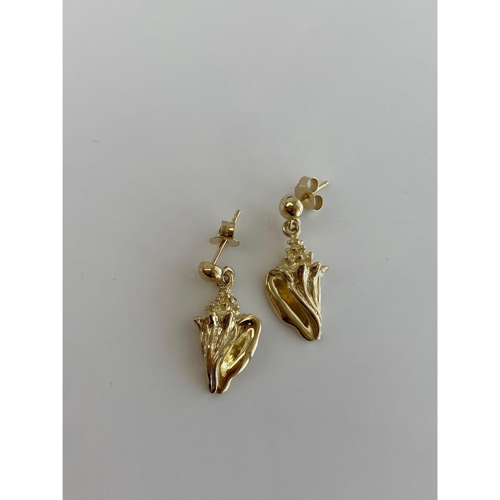 Vintage Solid 14k Yellow Gold Seashell Dangle Stud Earrings