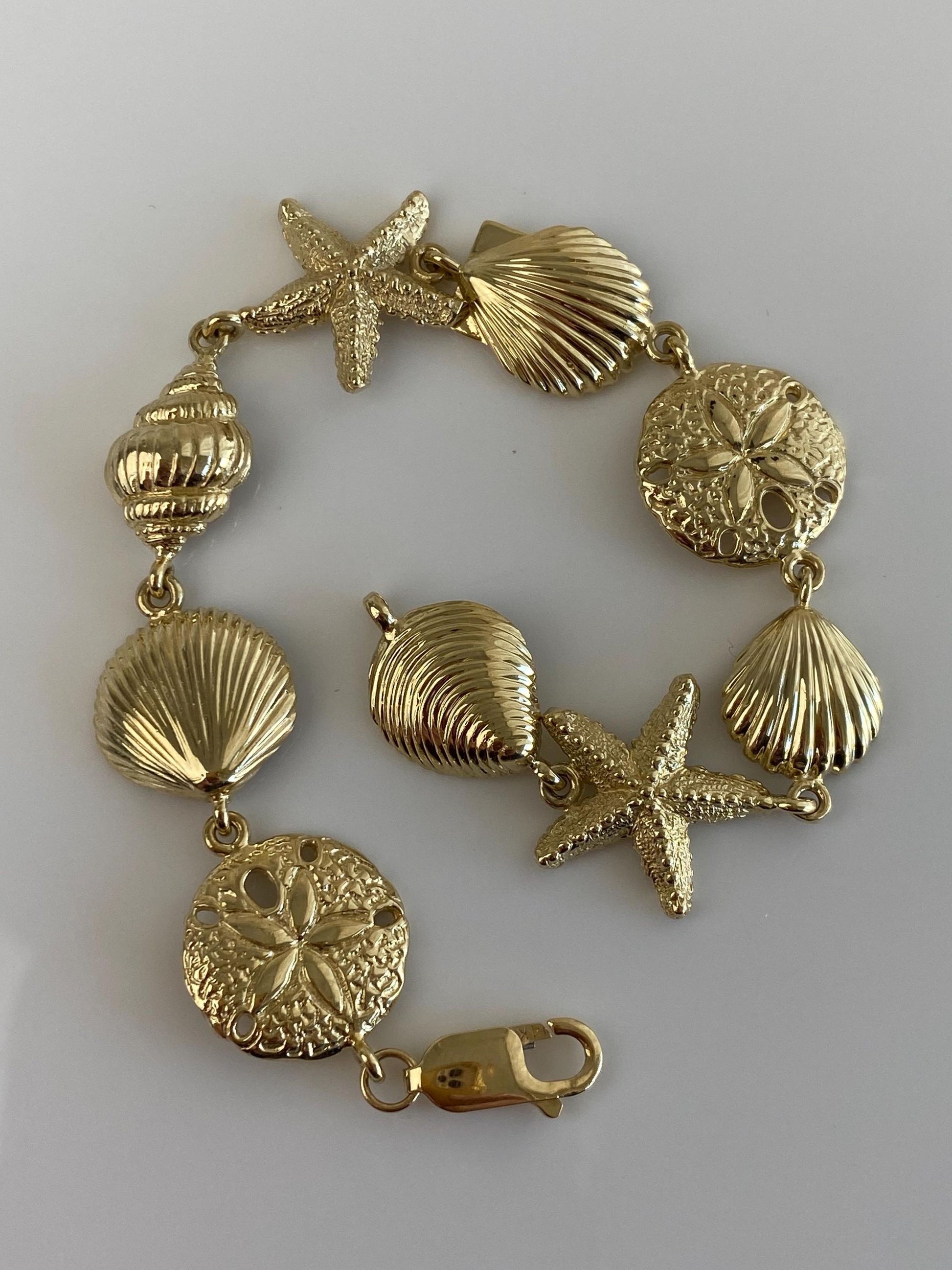 Vintage Solid 14k Yellow Gold Seashell Link Bracelet - 7 inches
