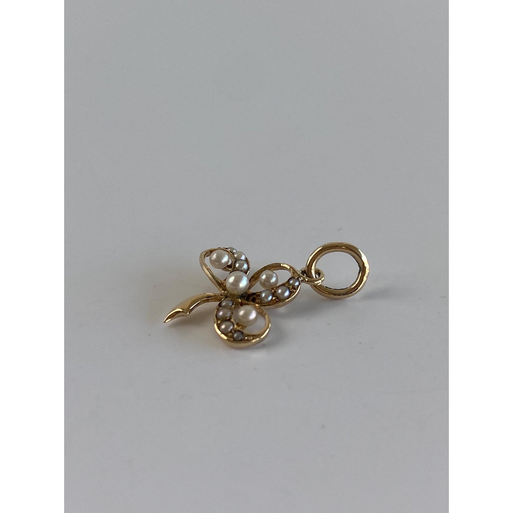 Vintage Solid 14k Yellow Gold Seed Pearl Clover Charm