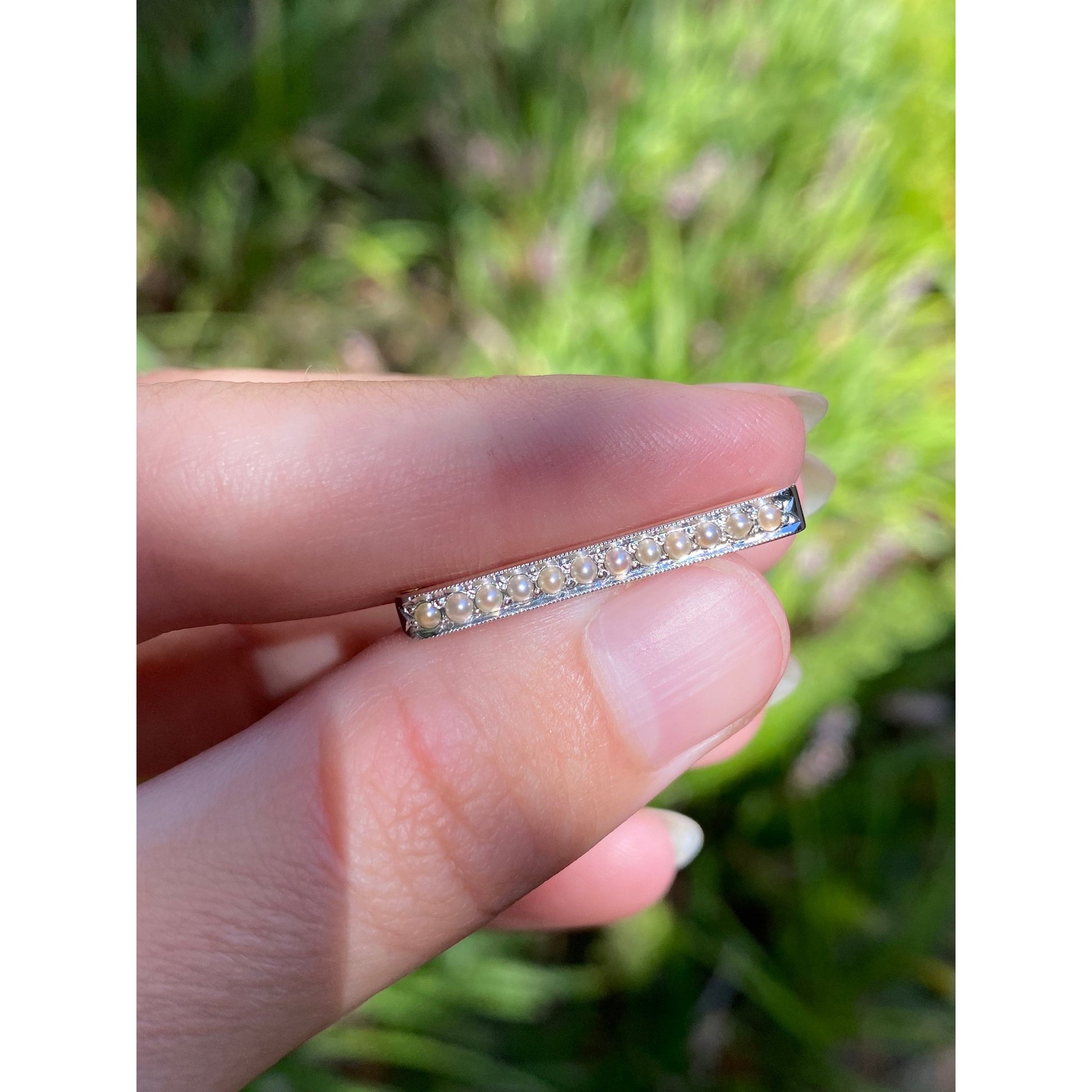 Vintage Solid 14k Yellow Gold Seed Pearl Safety Pin