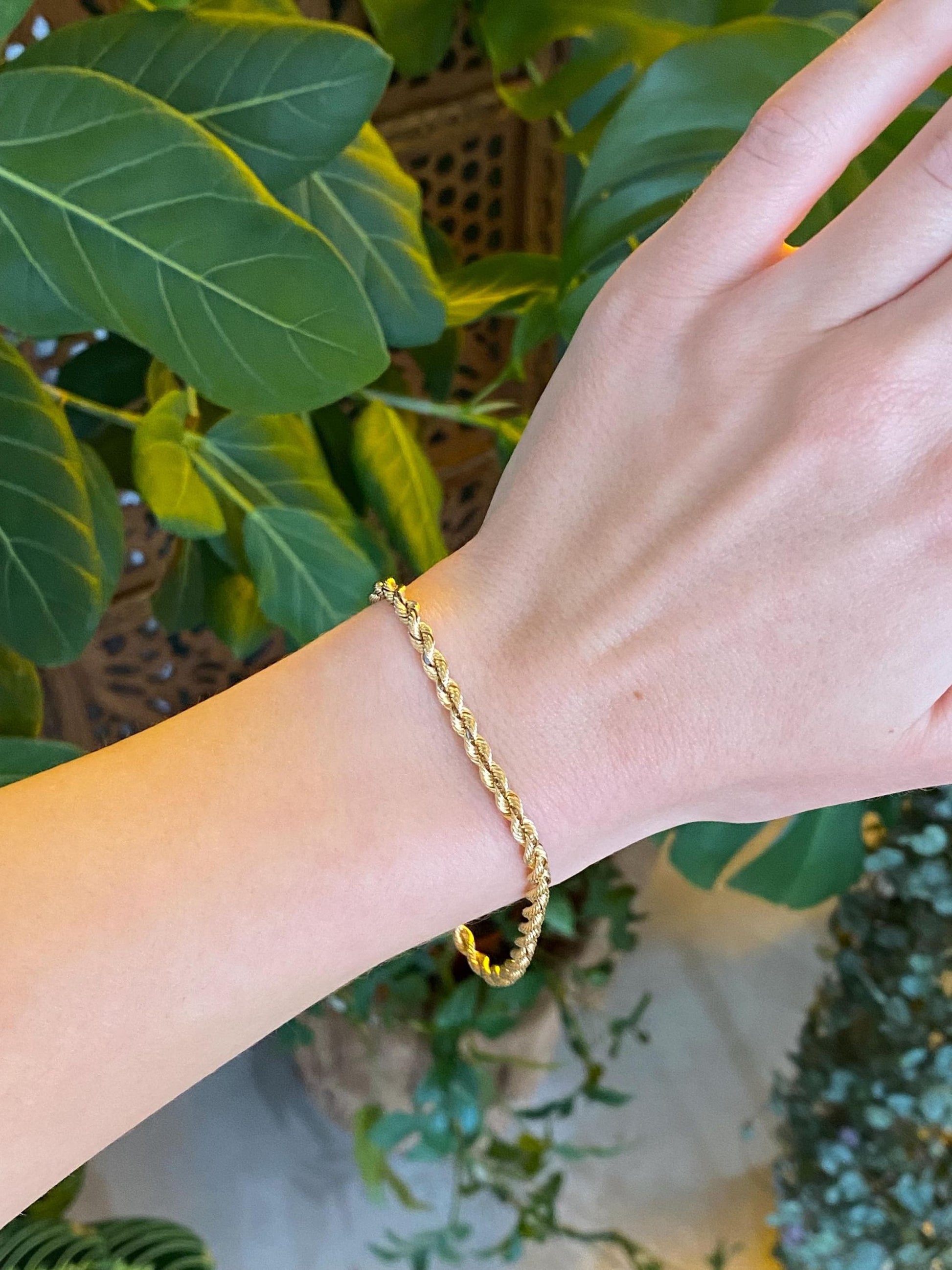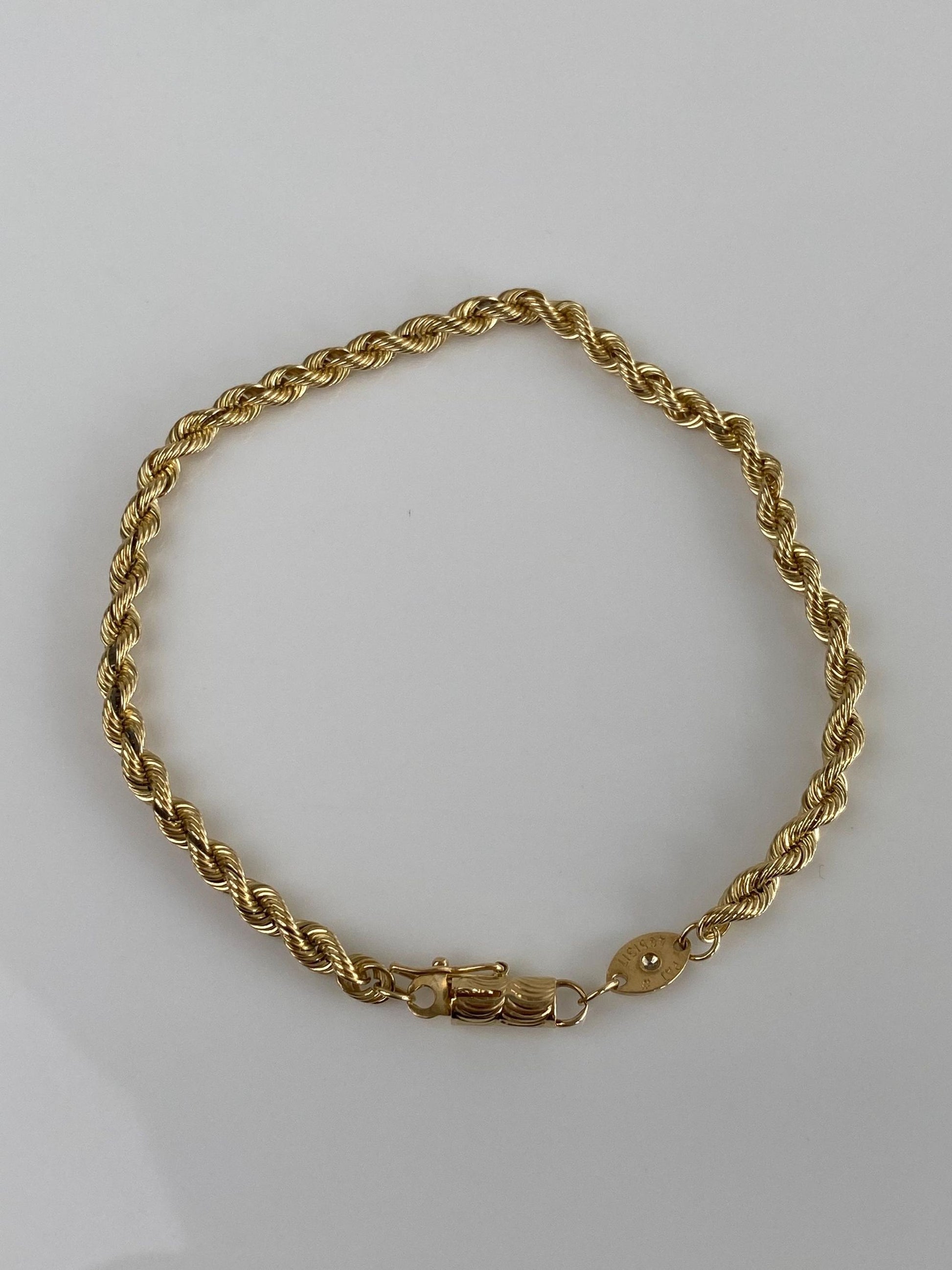 Vintage Solid 14k Yellow Gold Silk Rope Chain Bracelet - 8 inches