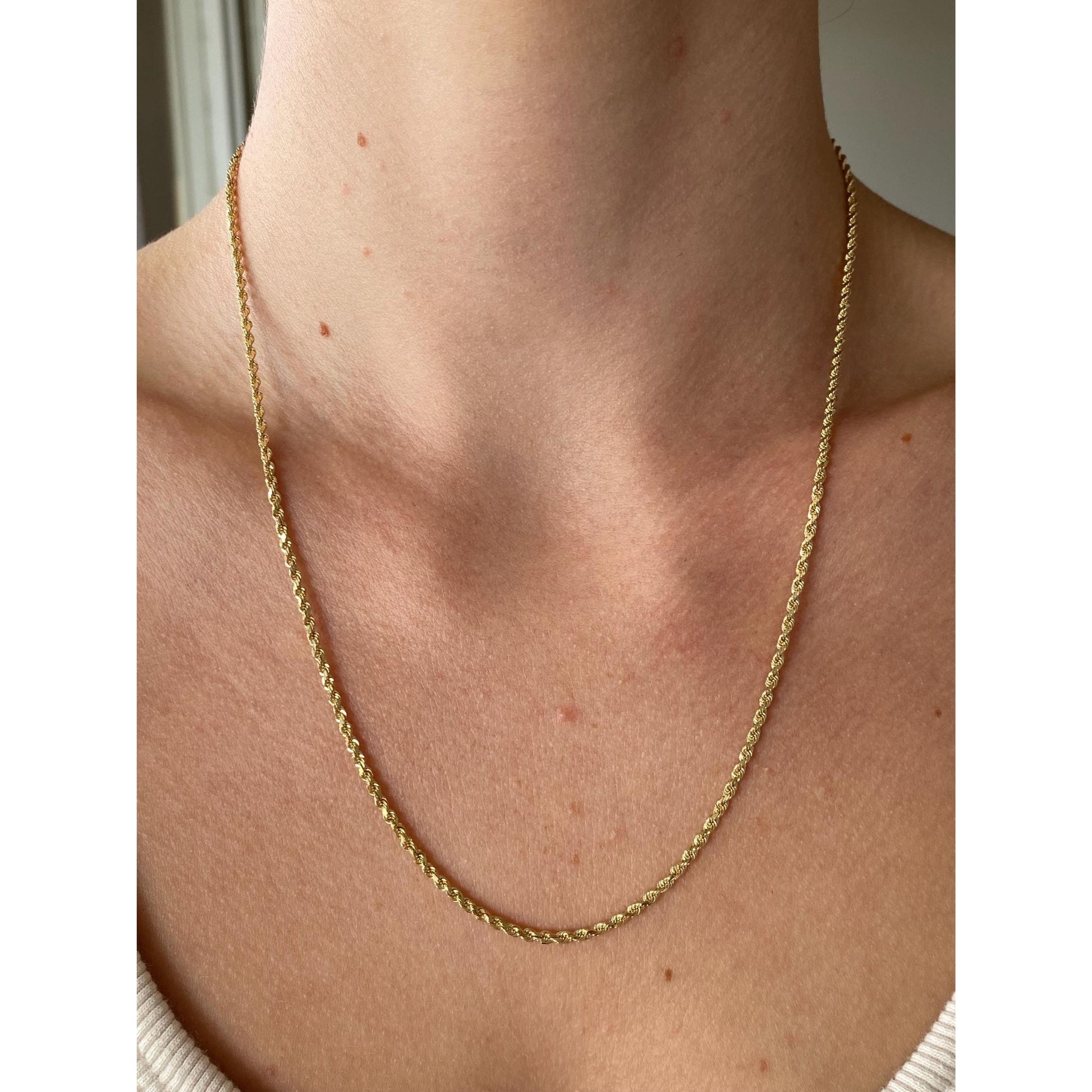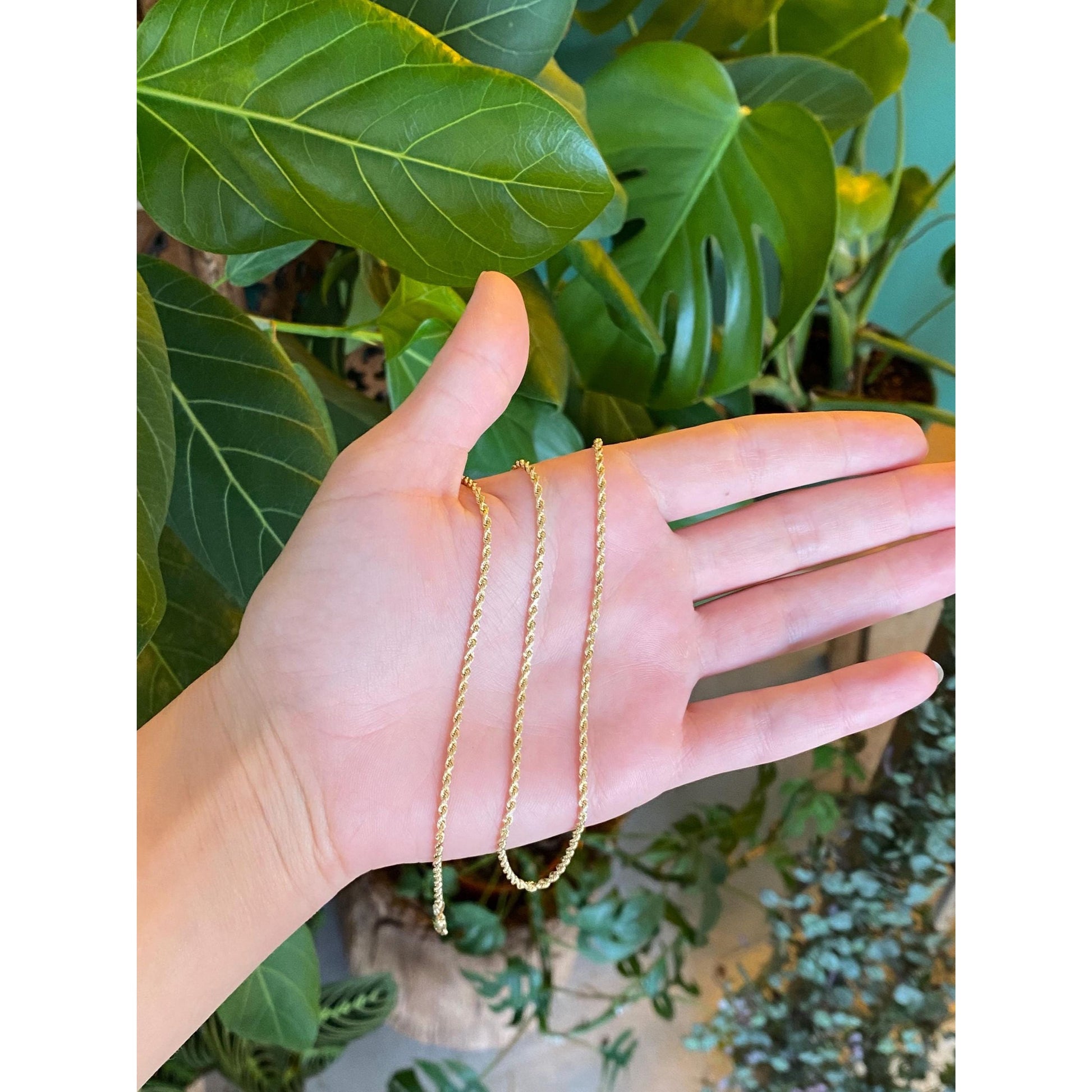 Vintage Solid 14k Yellow Gold Slim Diamond Cut Rope Chain Necklace - 19.75 inches
