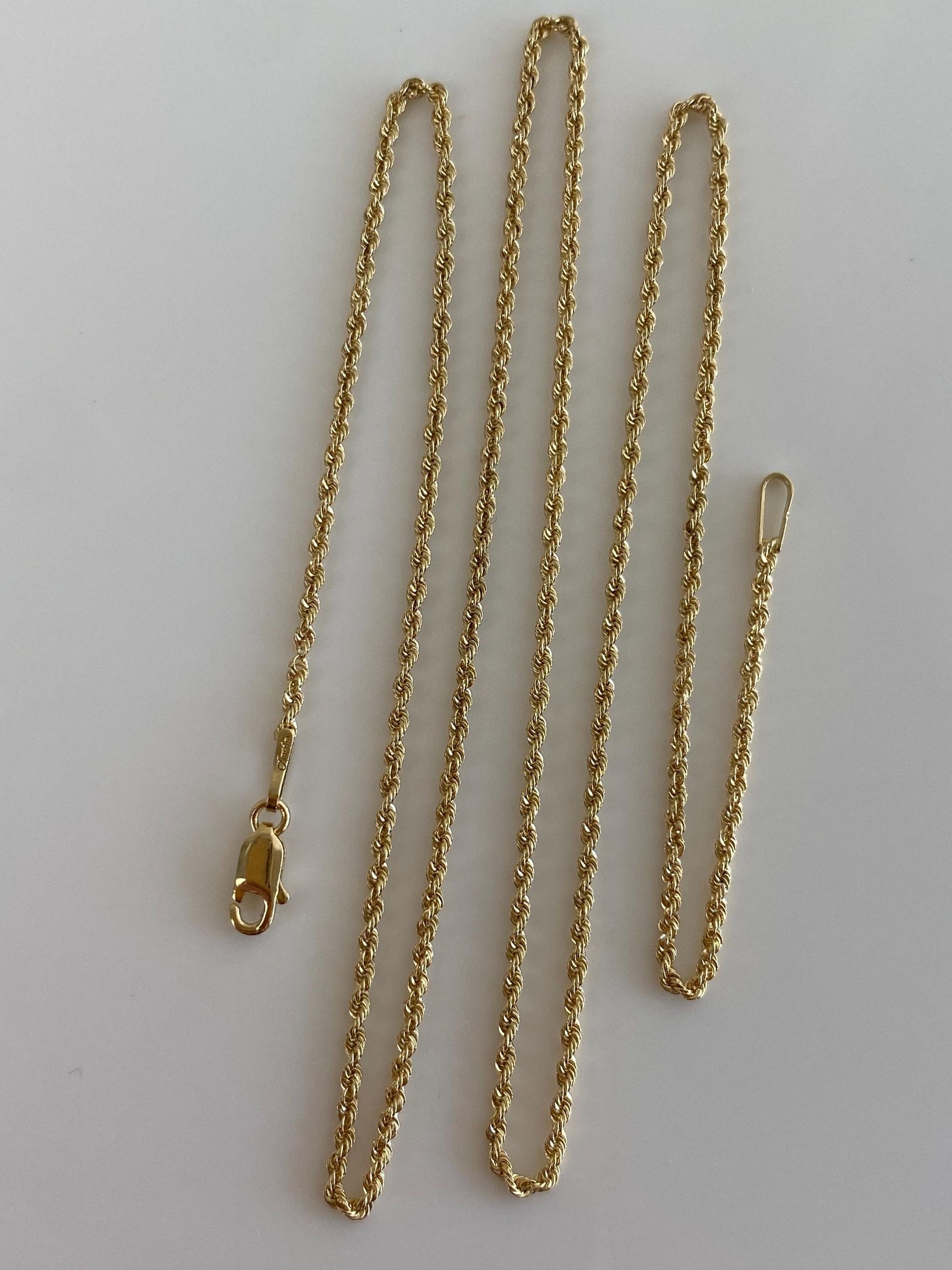 Vintage Solid 14k Yellow Gold Slim Rope Chain Necklace - 18 inches