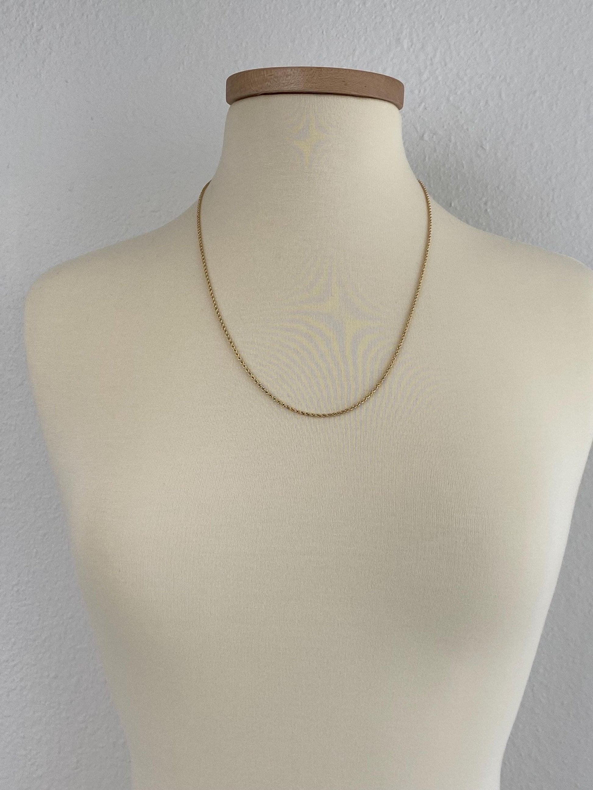 Vintage Solid 14k Yellow Gold Slim Rope Chain Necklace - 23.75 inches