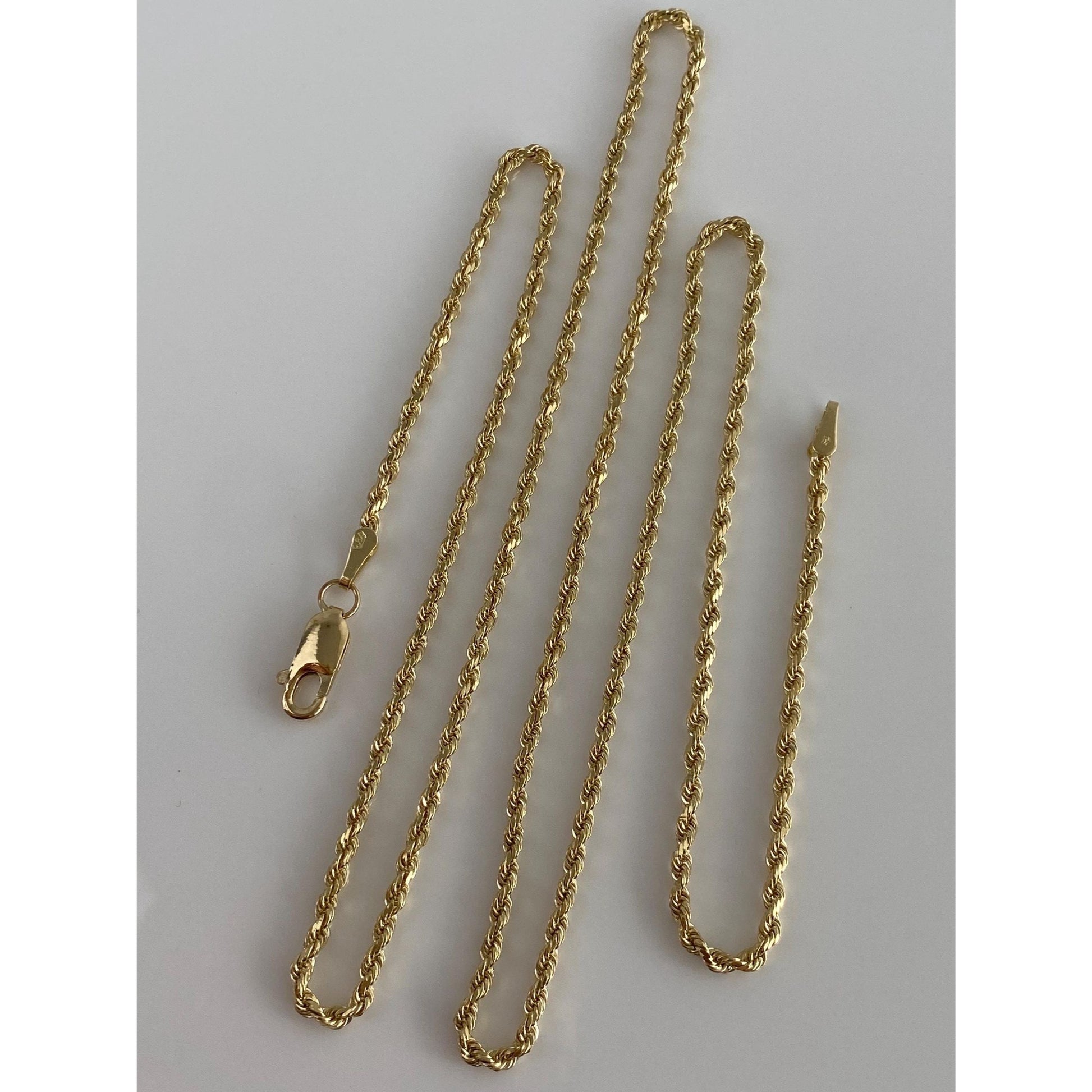 Vintage Solid 14k Yellow Gold Slim Rope Chain Necklace - 24.5 inches