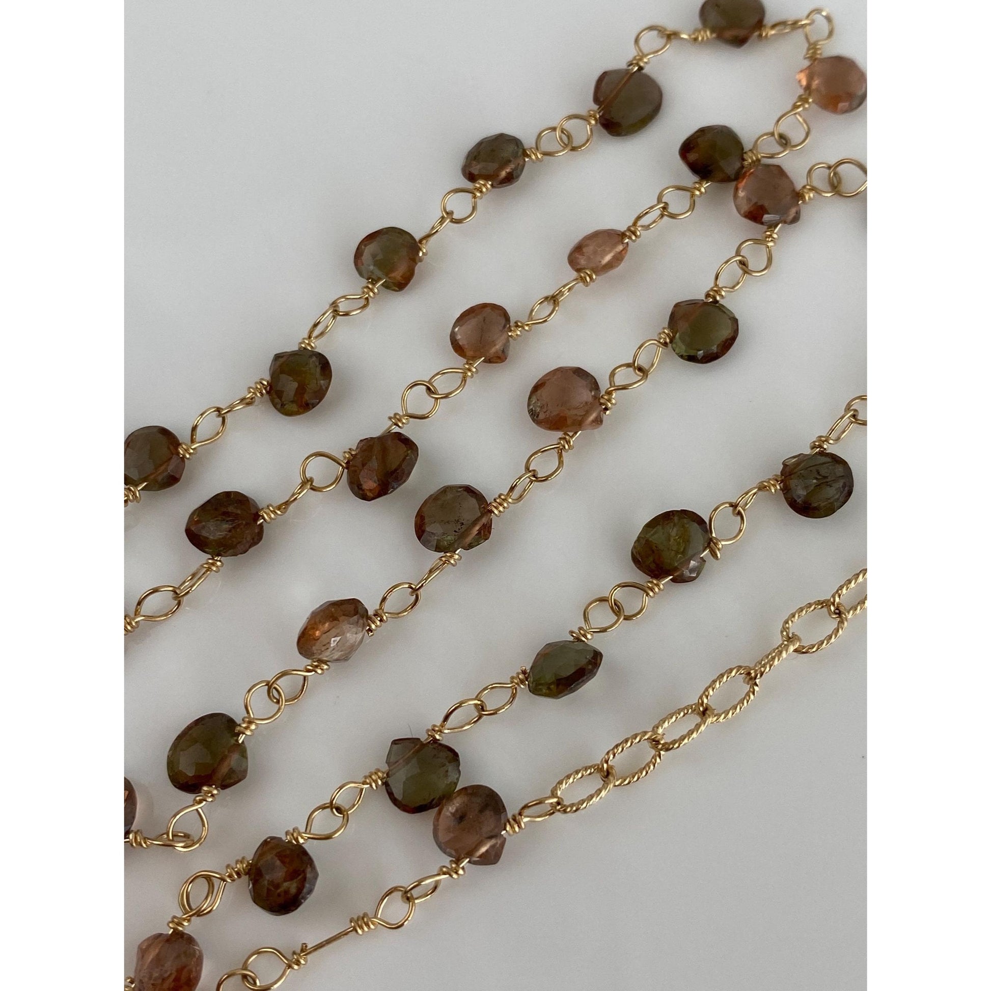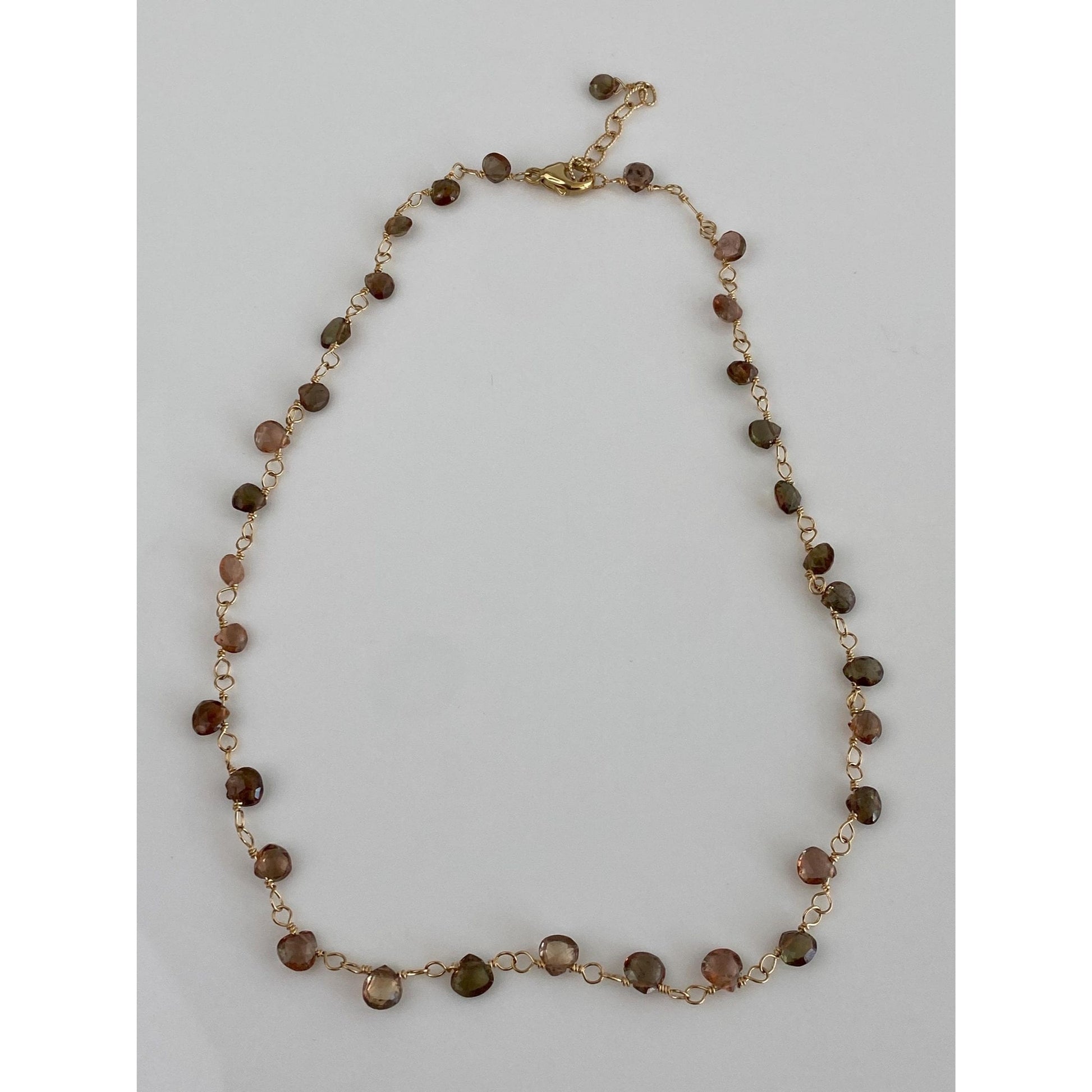 Vintage Solid 14k Yellow Gold Smokey & Pink Quartz Bead Link Necklace - 15.5 inches