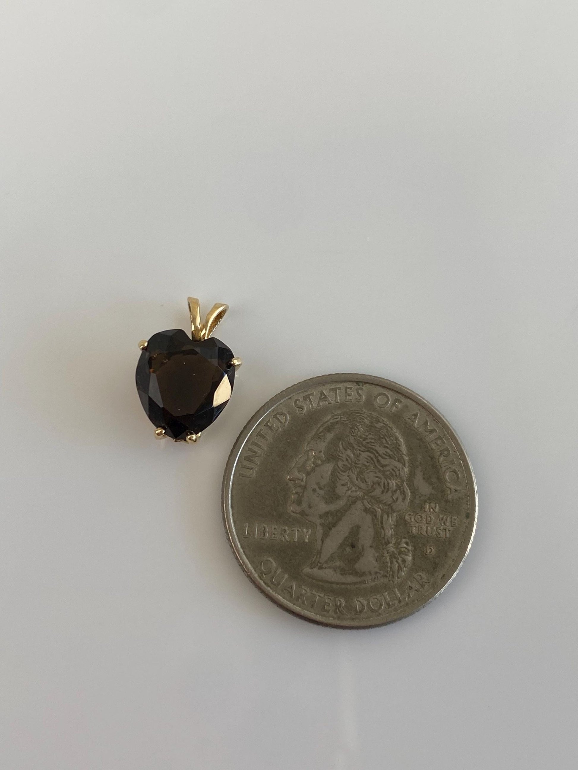Vintage Solid 14k Yellow Gold Smokey Quartz Heart Charm