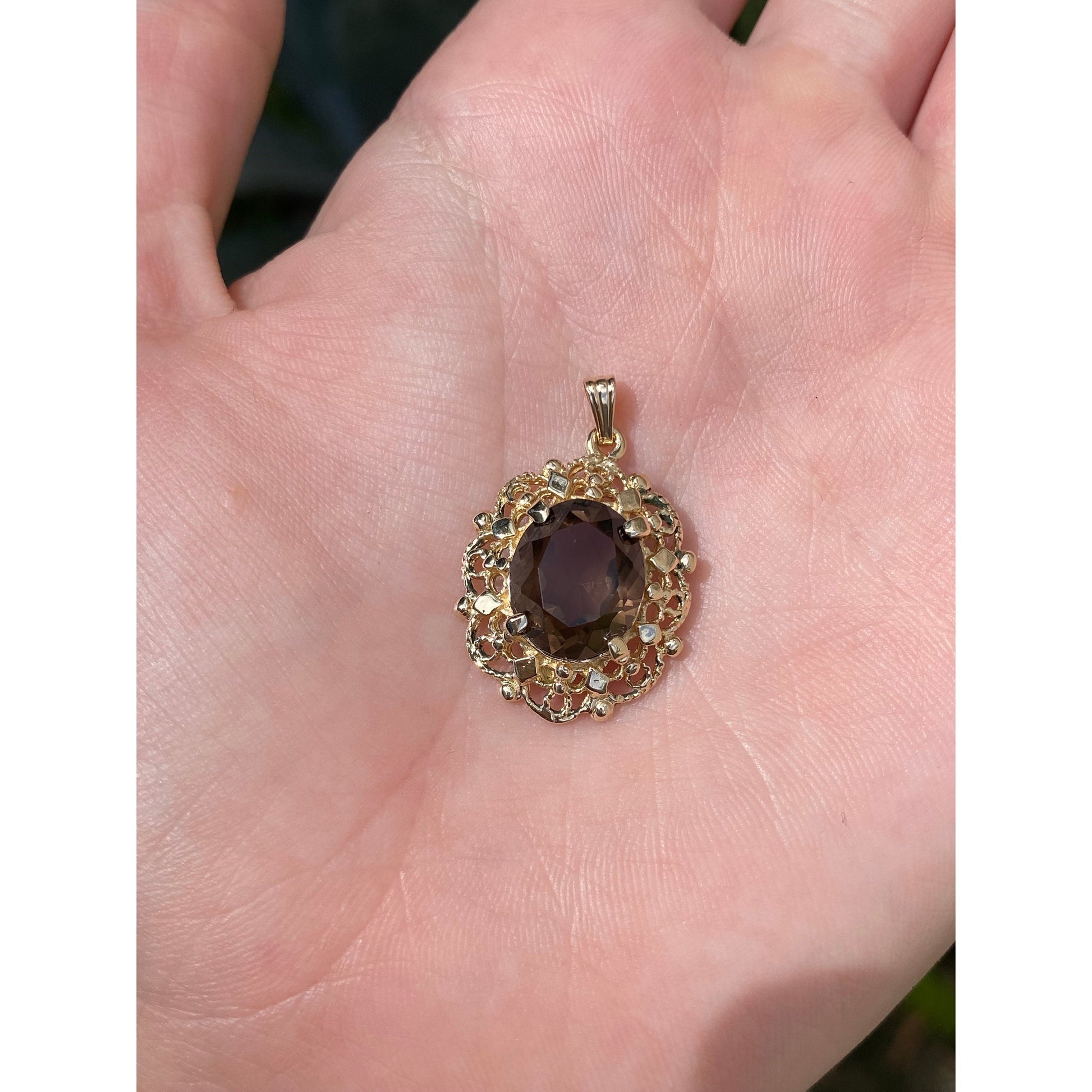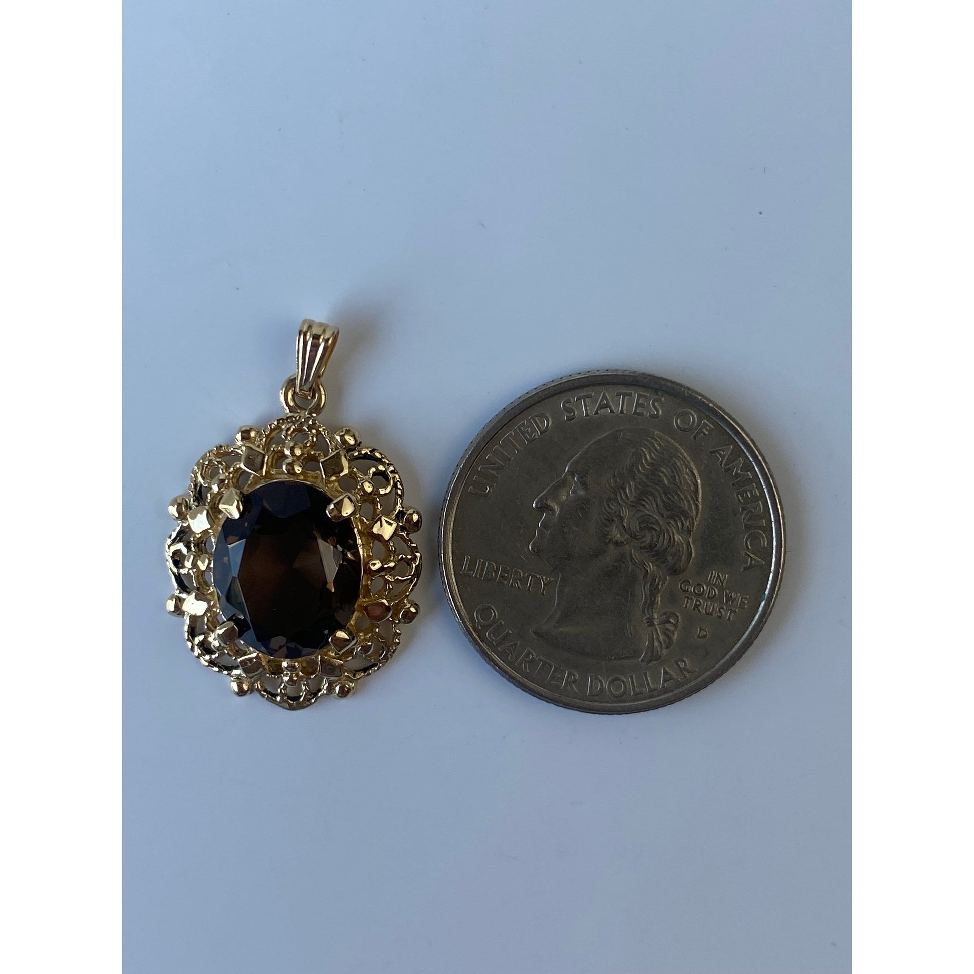 Vintage Solid 14k Yellow Gold Smoky Quartz Ornate Charm