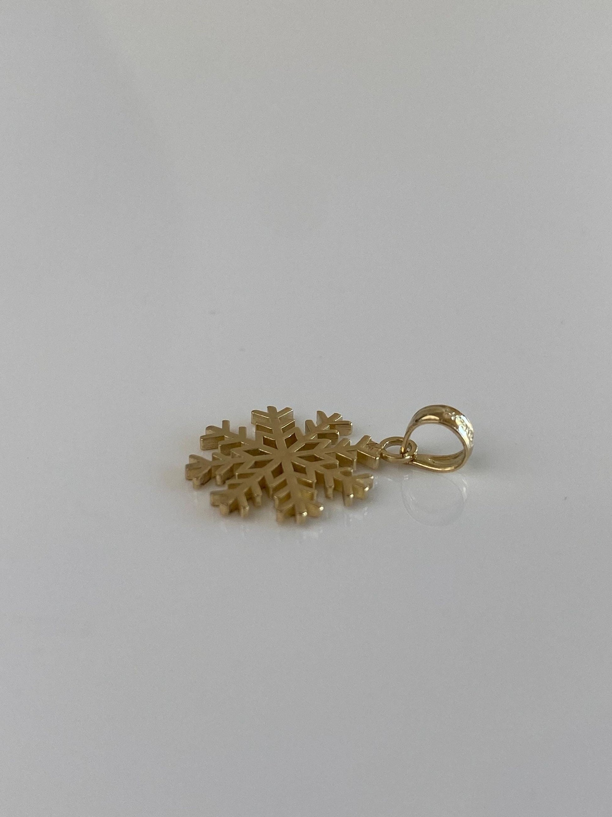 Vintage Solid 14k Yellow Gold Snowflake Charm