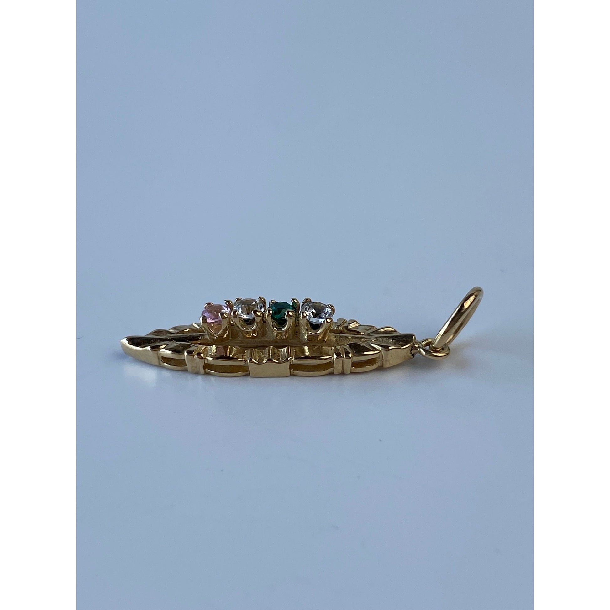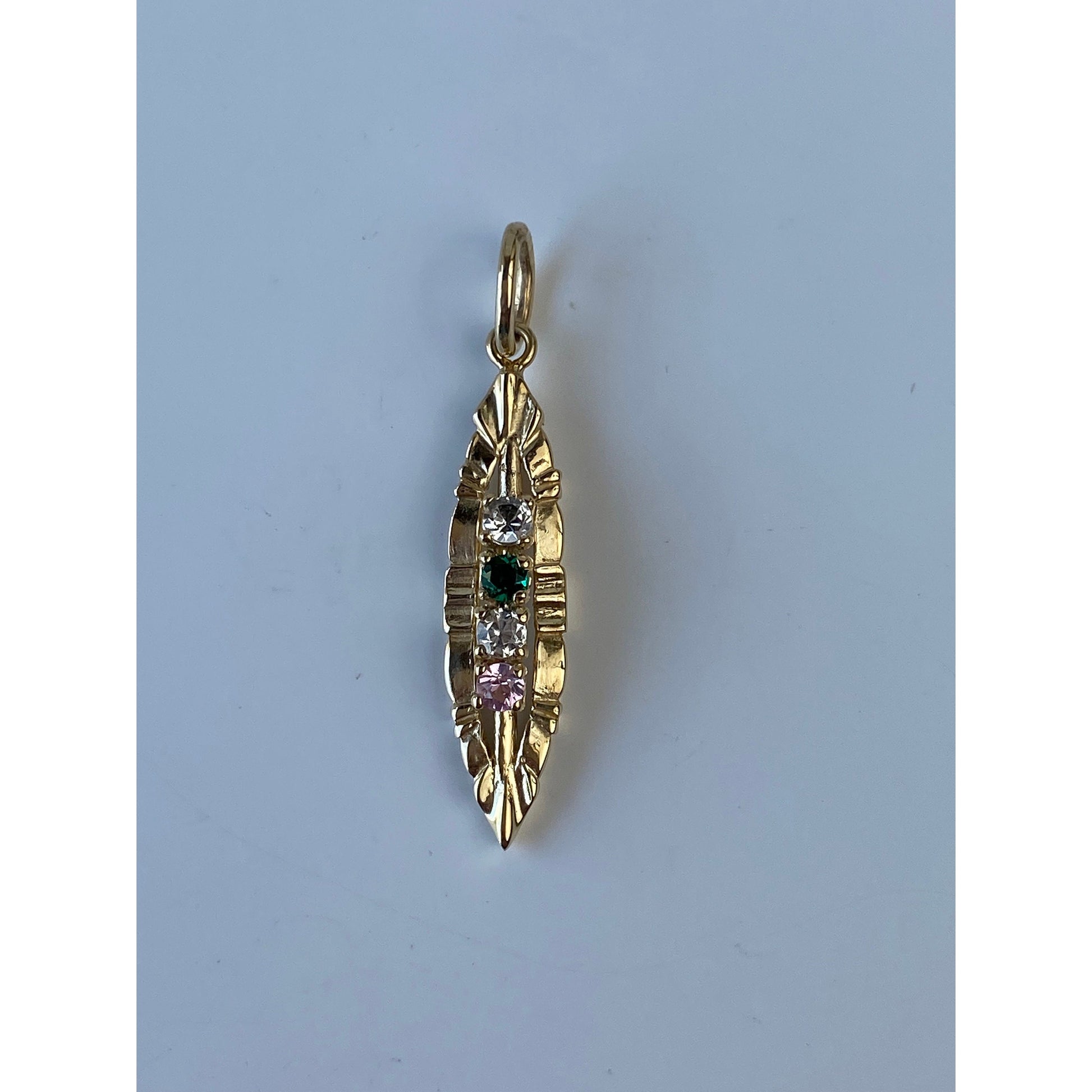 Vintage Solid 14k Yellow Gold Spinel Quartz Cubic Zirconia Row Charm