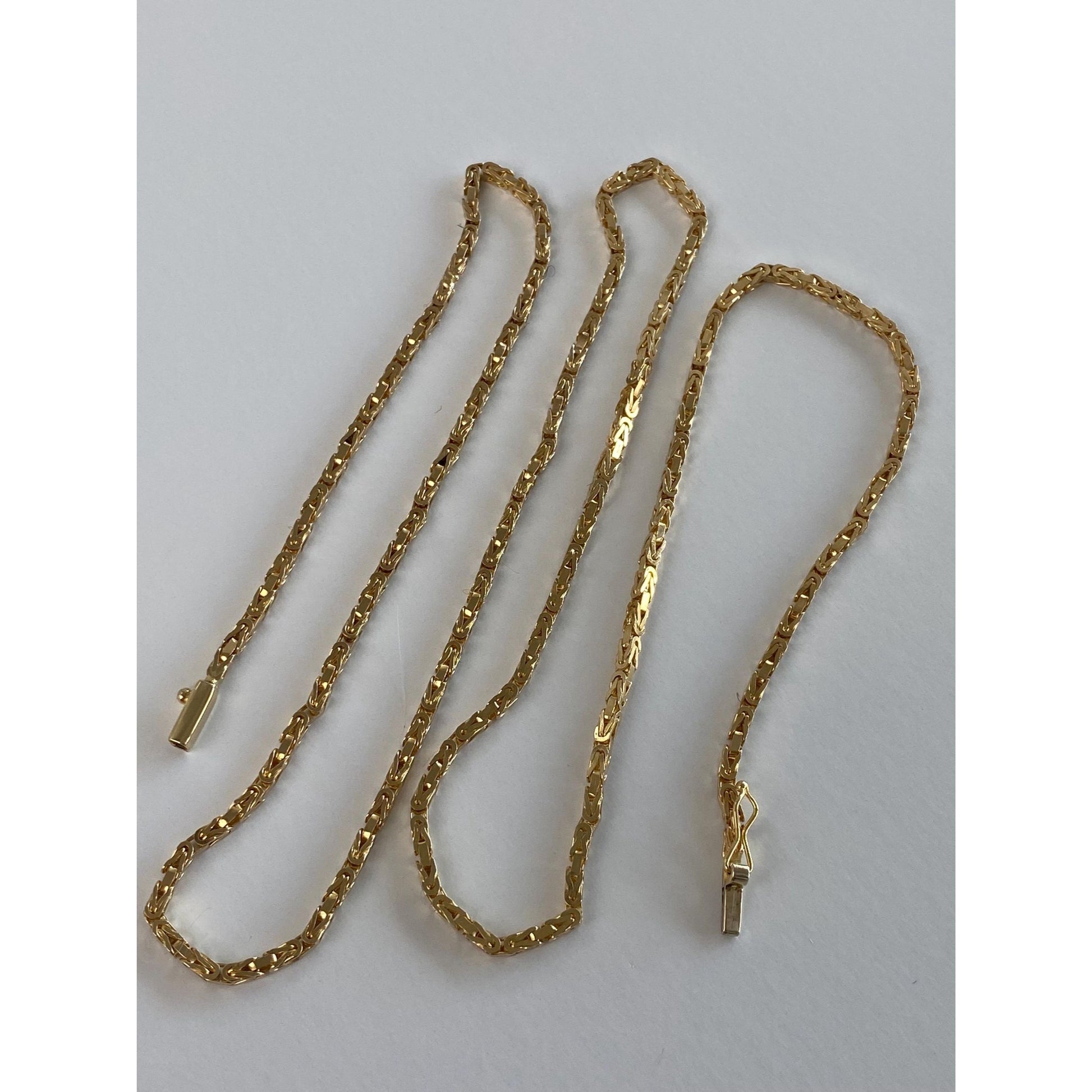 Vintage Solid 14k Yellow Gold Square Byzantine Chain Necklace - 23.75 inches
