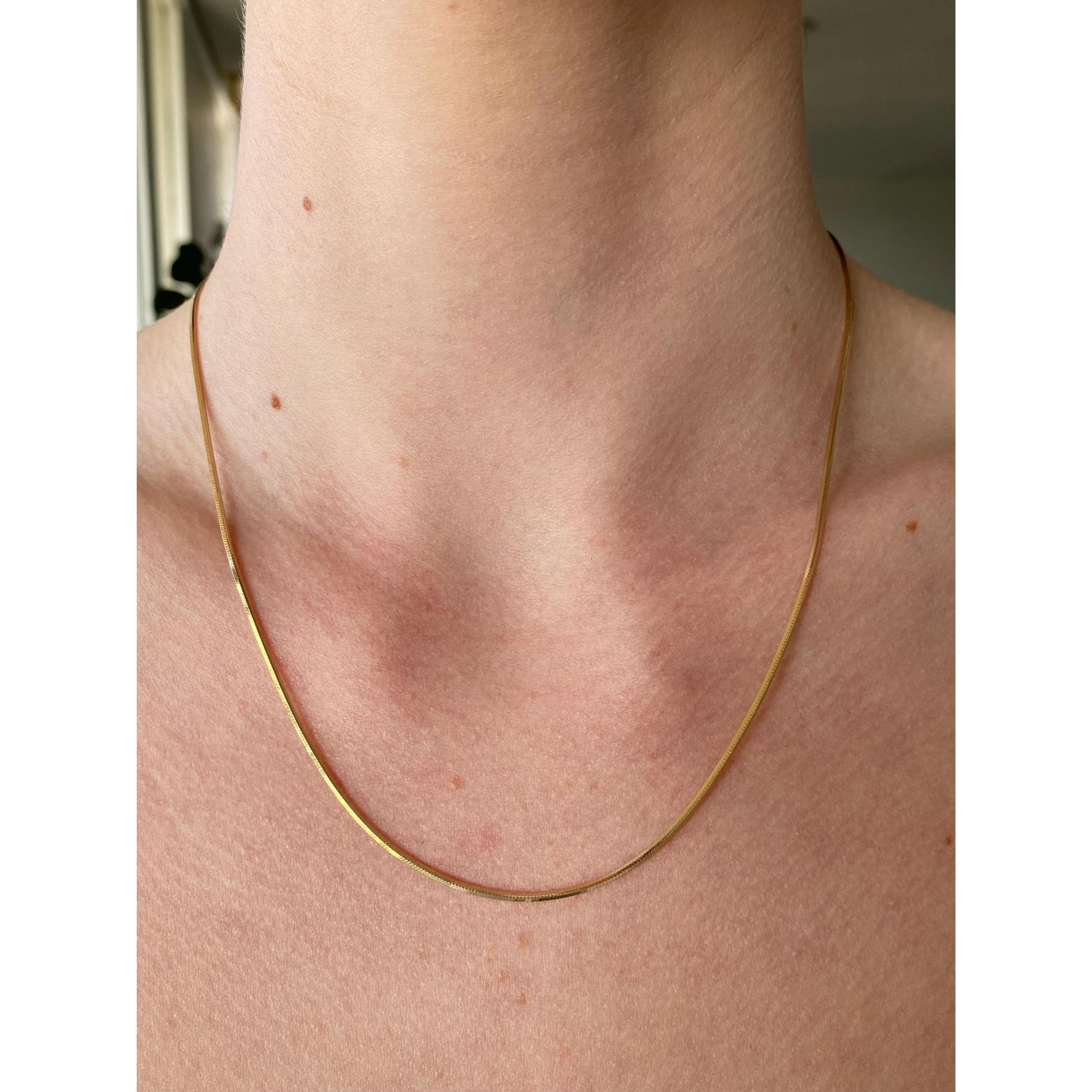 Vintage Solid 14k Yellow Gold Square Snake Chain Necklace - 18 inches