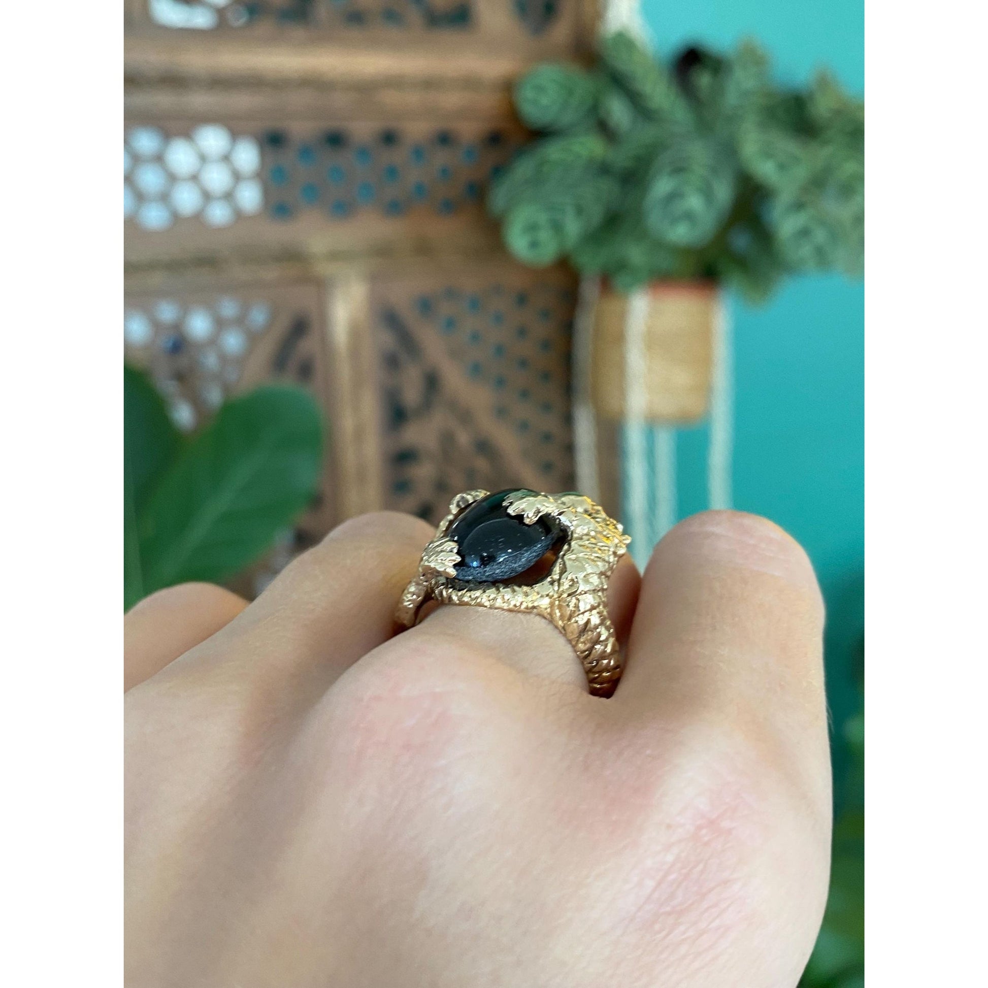 Vintage Solid 14k Yellow Gold Star Sapphire Dragon Ring - Size 8