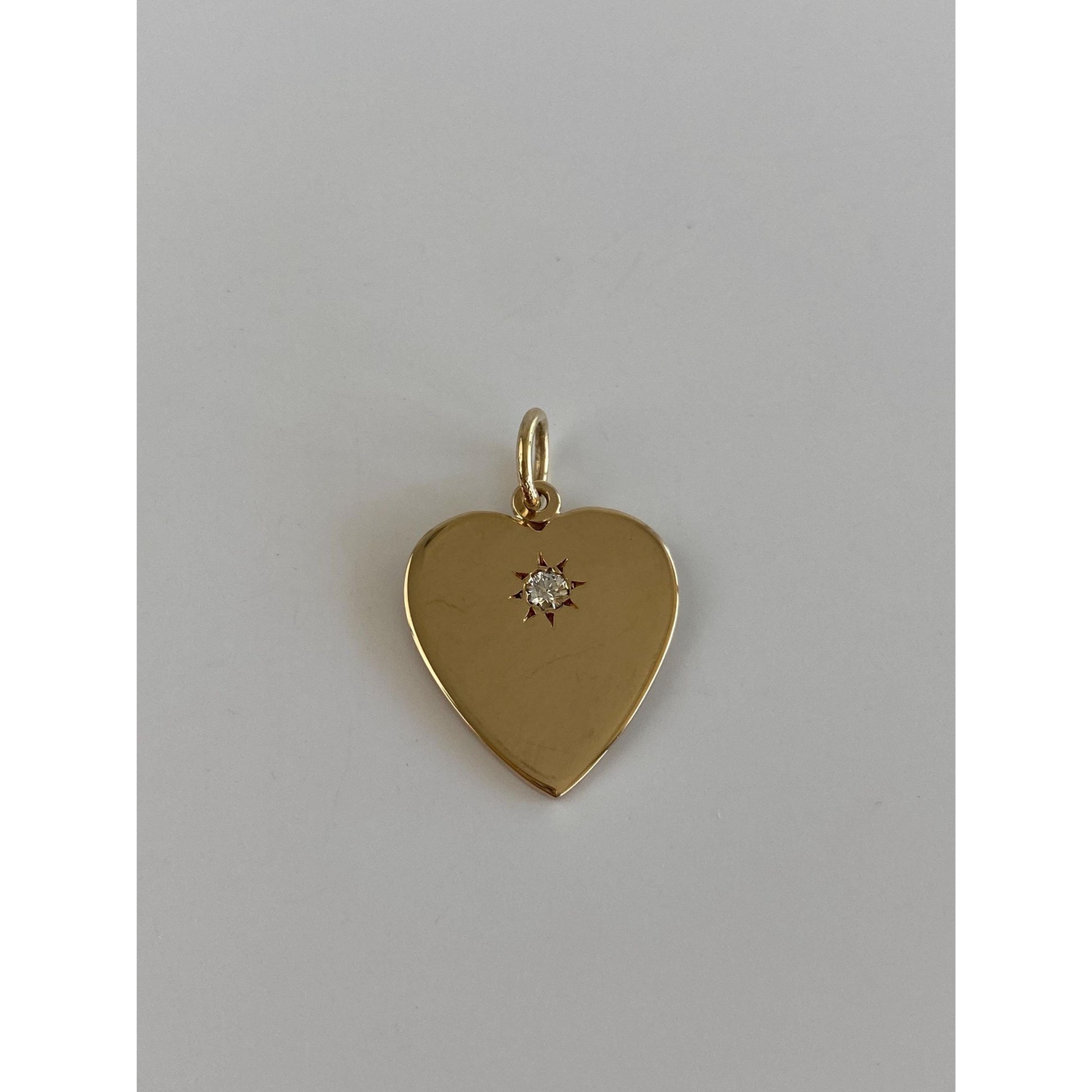 Vintage Solid 14k Yellow Gold Star Set Diamond Heart Charm