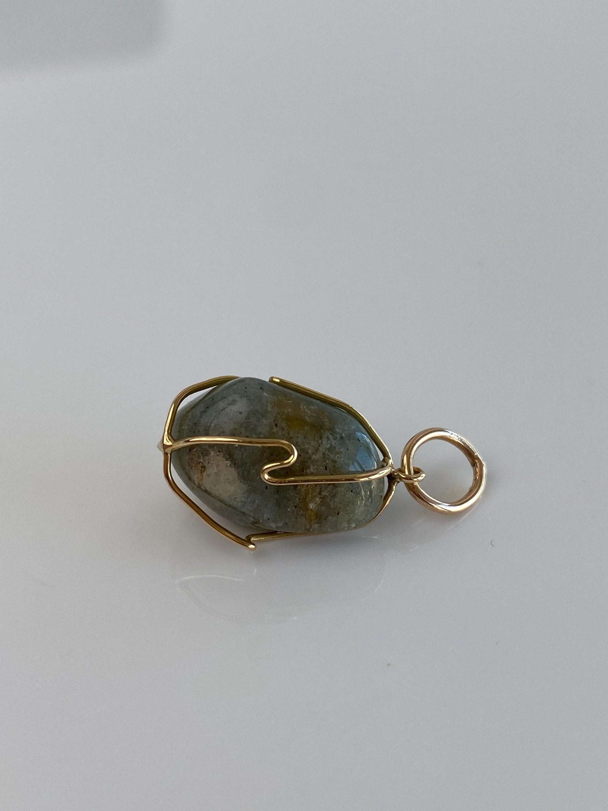 Vintage Solid 14k Yellow Gold Stone Wire Wrapped Charm