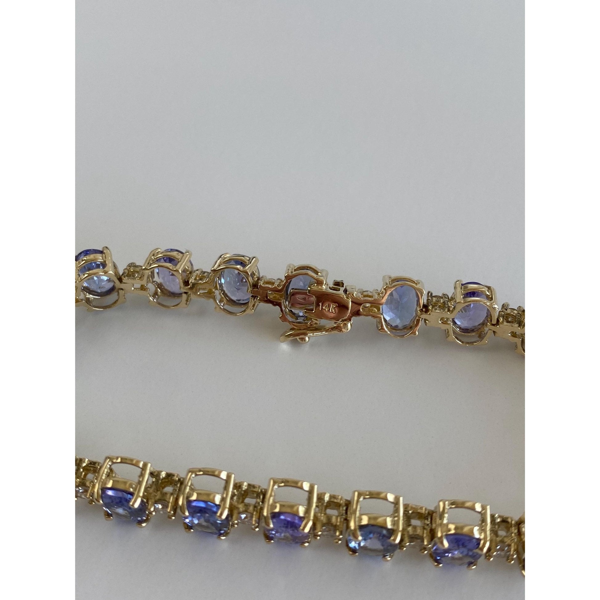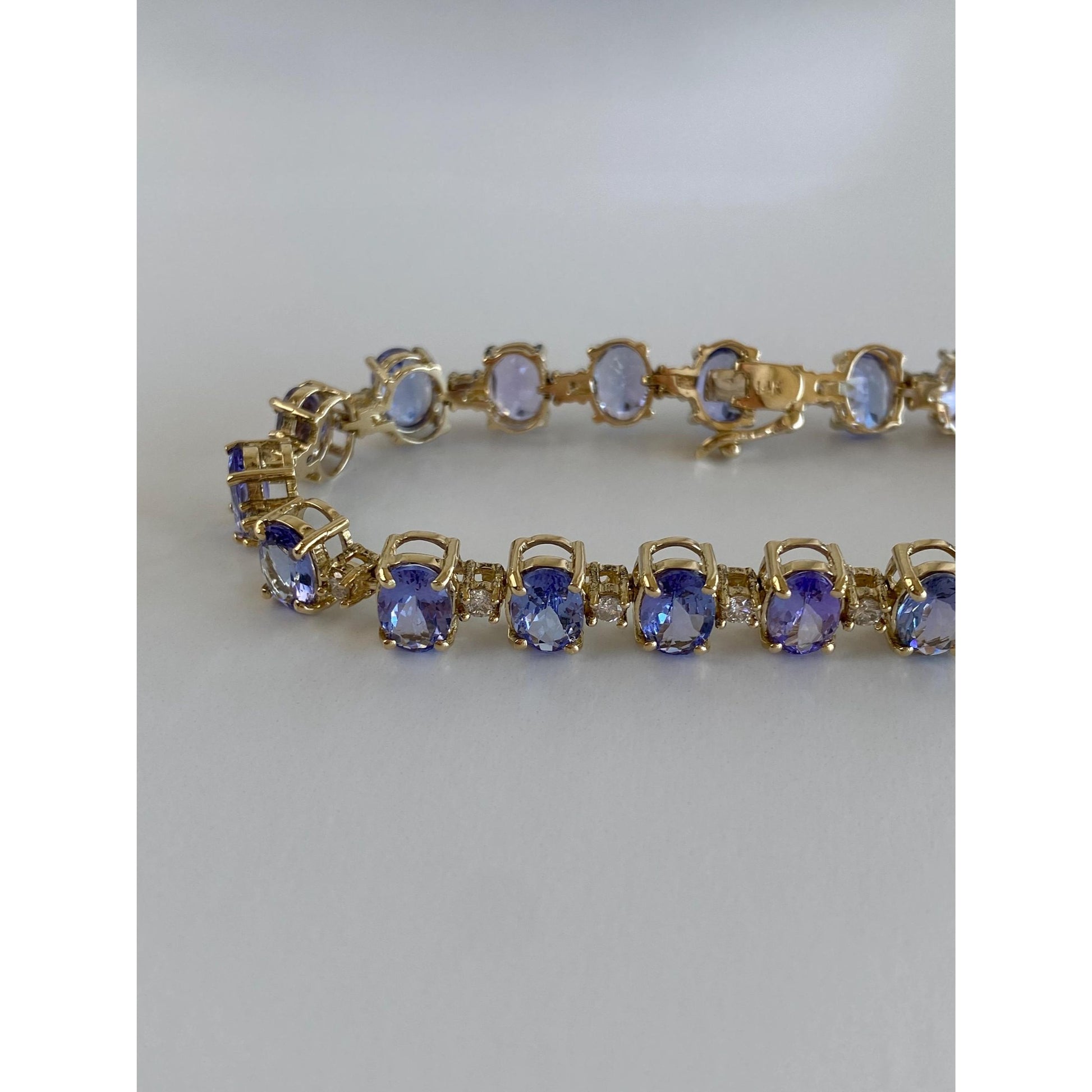 Vintage Solid 14k Yellow Gold Tanzanite Diamond Link Bracelet - 7.25 inches
