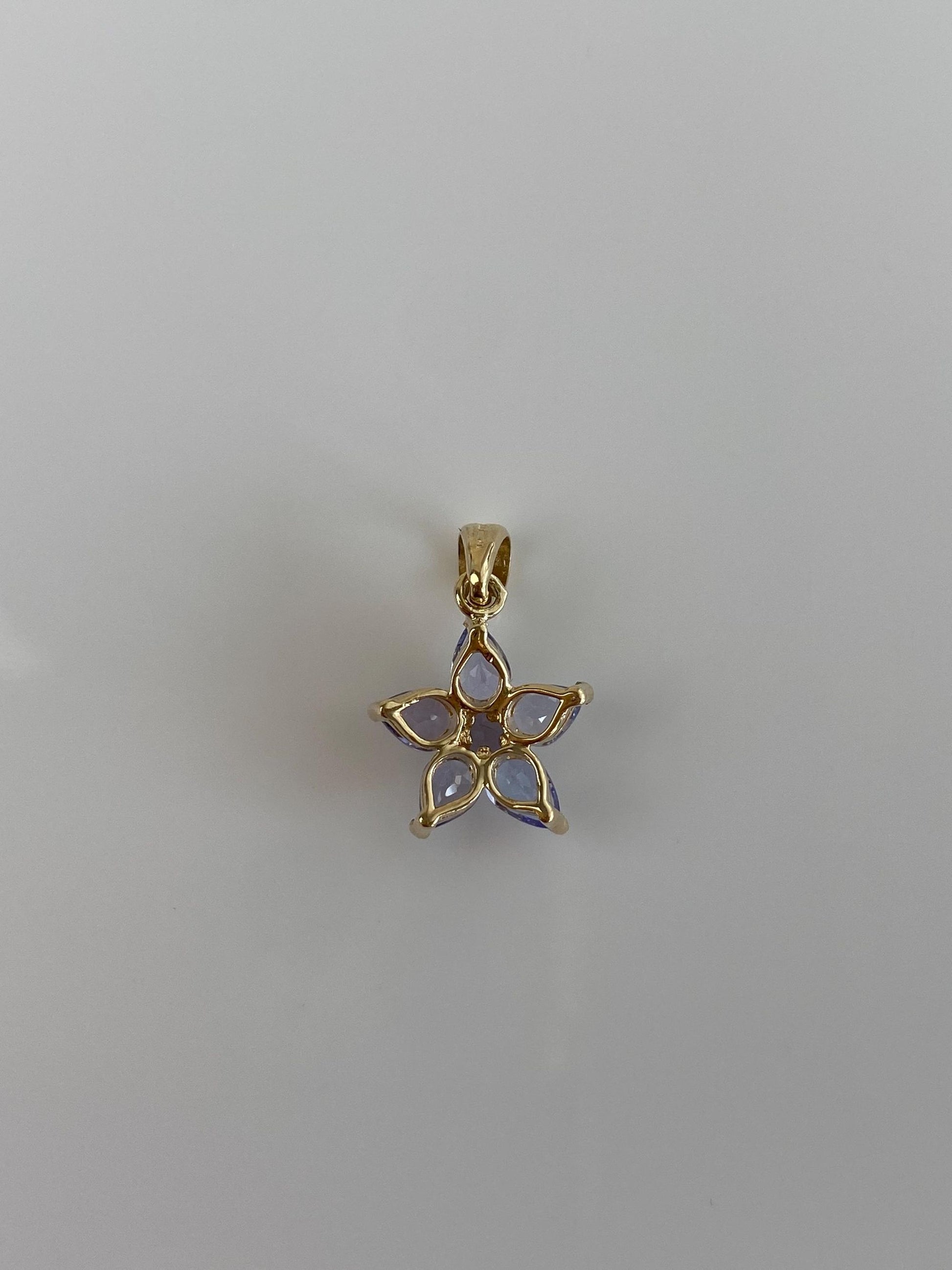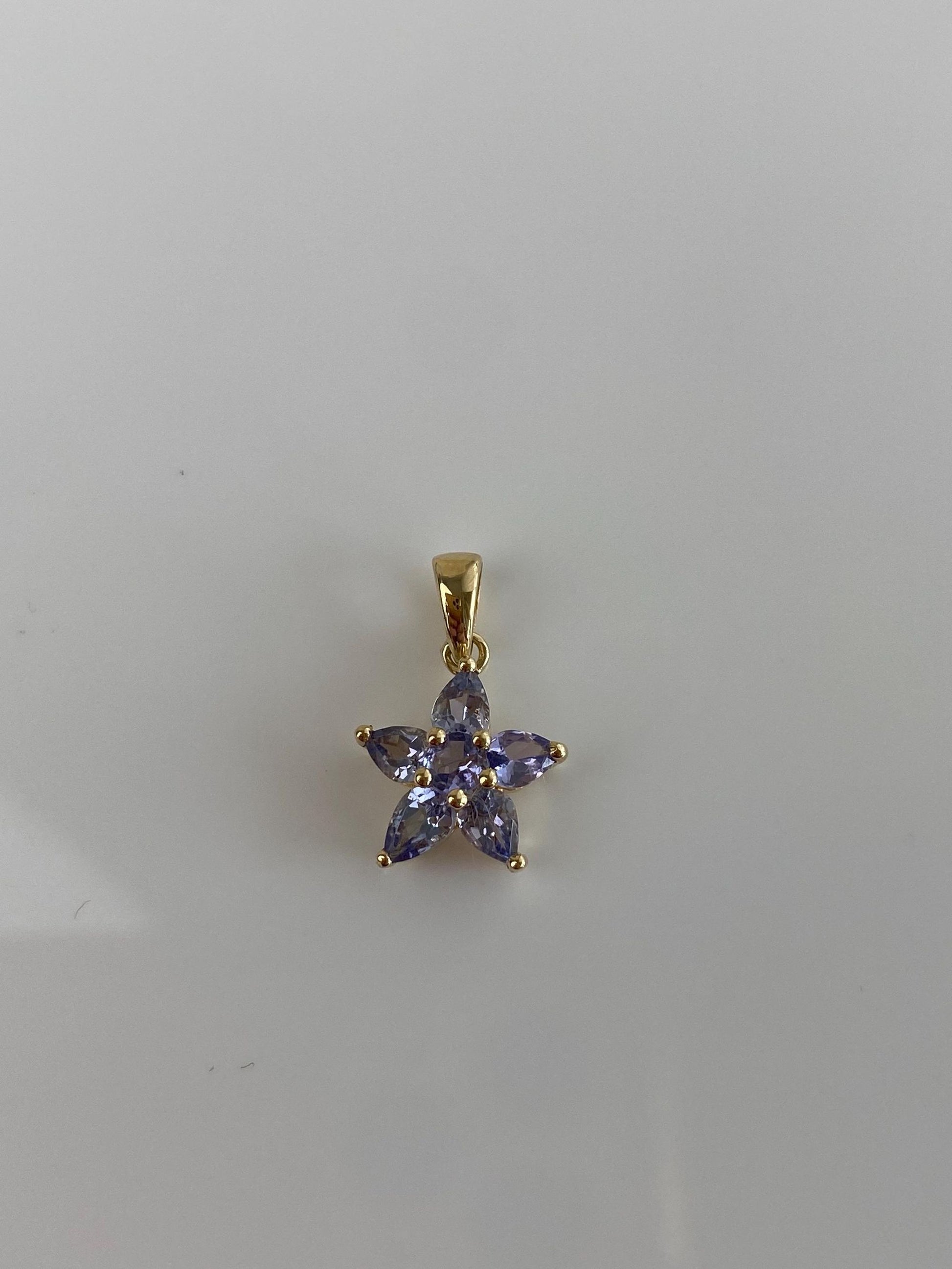 Vintage Solid 14k Yellow Gold Tanzanite Flower Charm