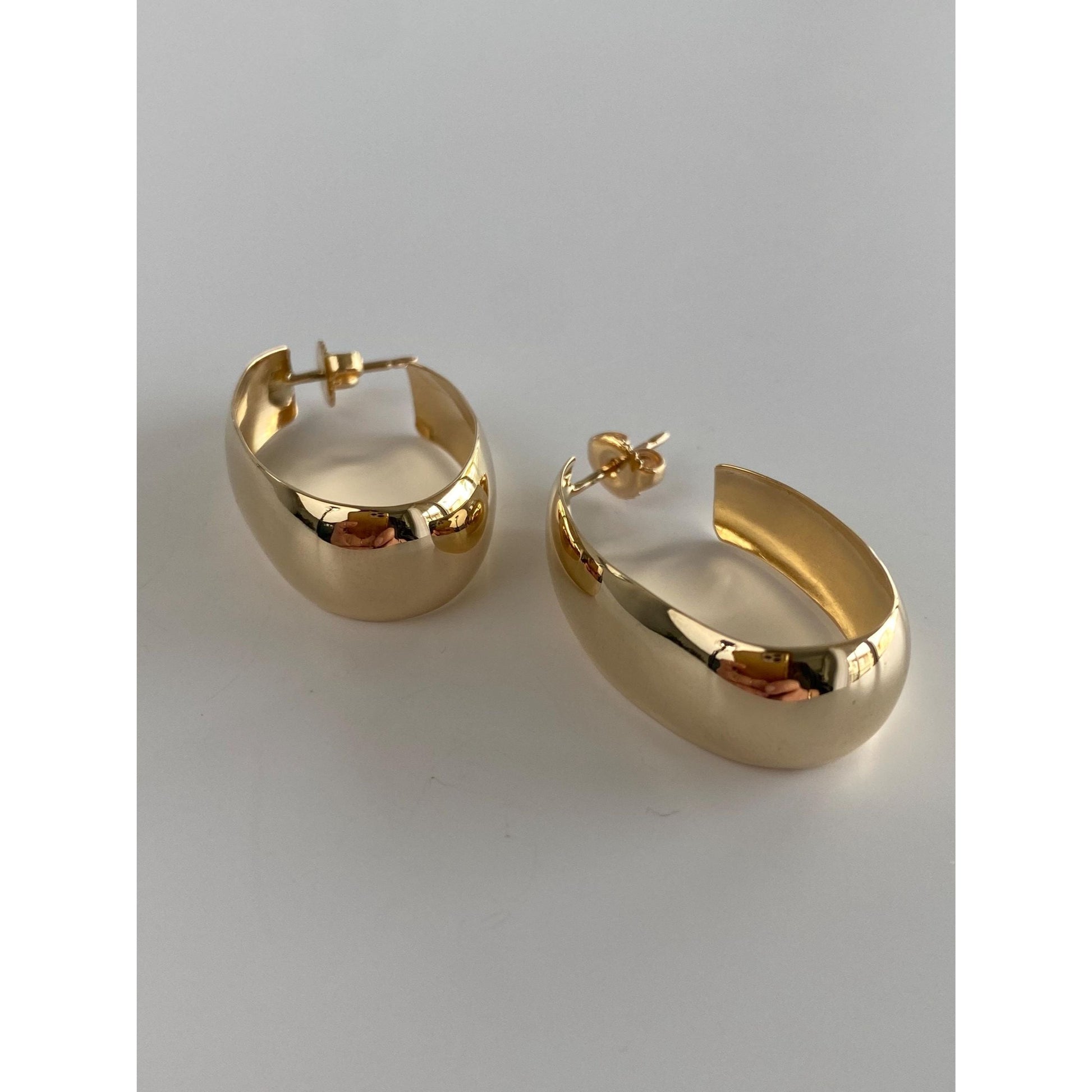 Vintage Solid 14k Yellow Gold Tapered Oval Hoop Earrings
