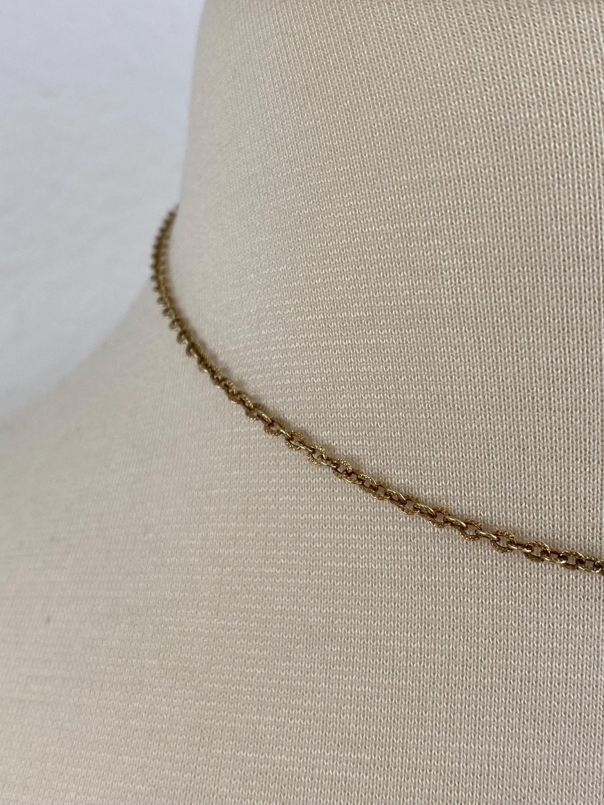 Vintage Solid 14k Yellow Gold Textured Cable Chain Necklace - 15 inches