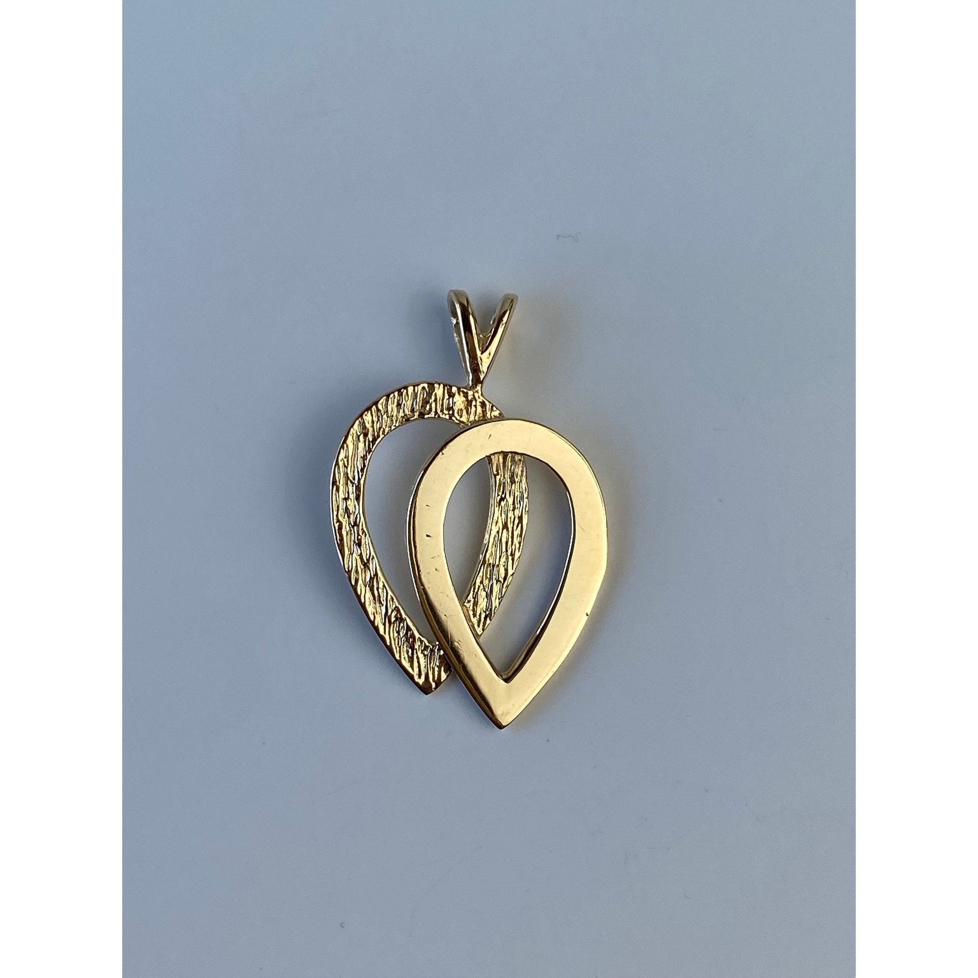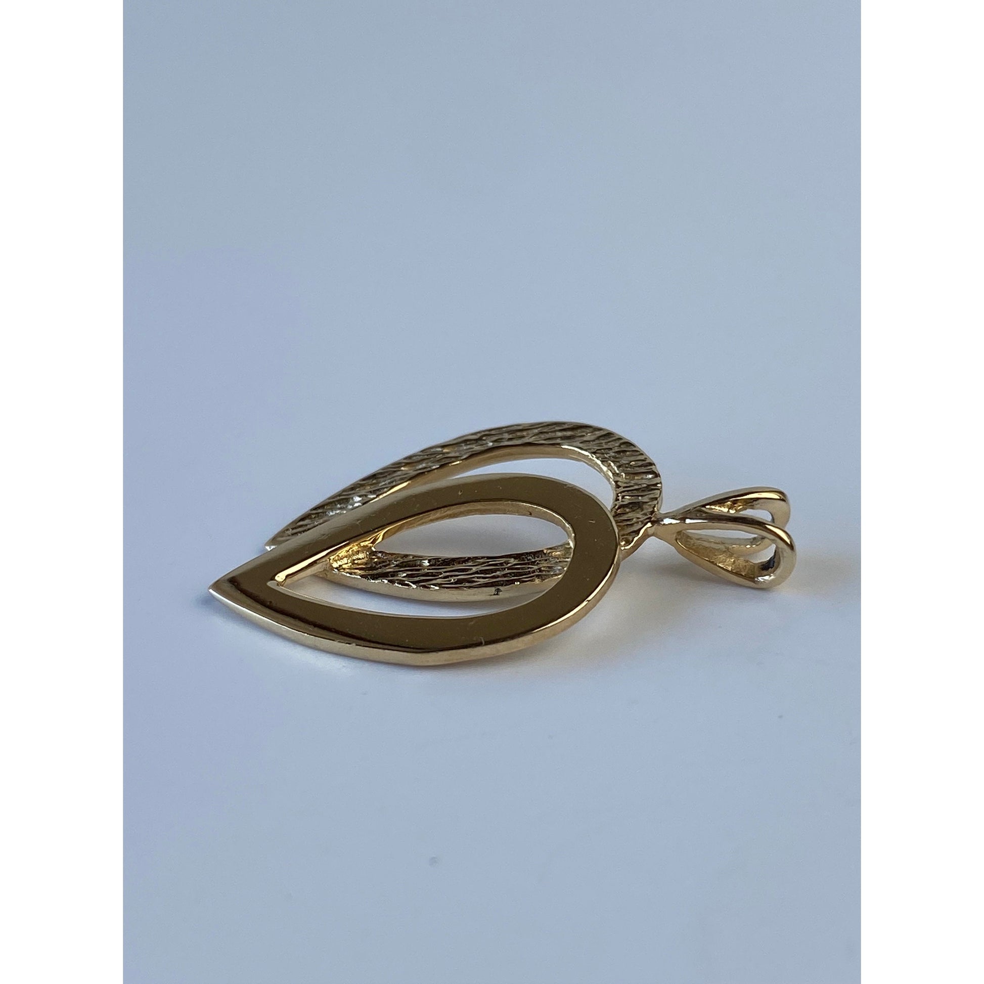 Vintage Solid 14k Yellow Gold Textured Double Teardrop Charm