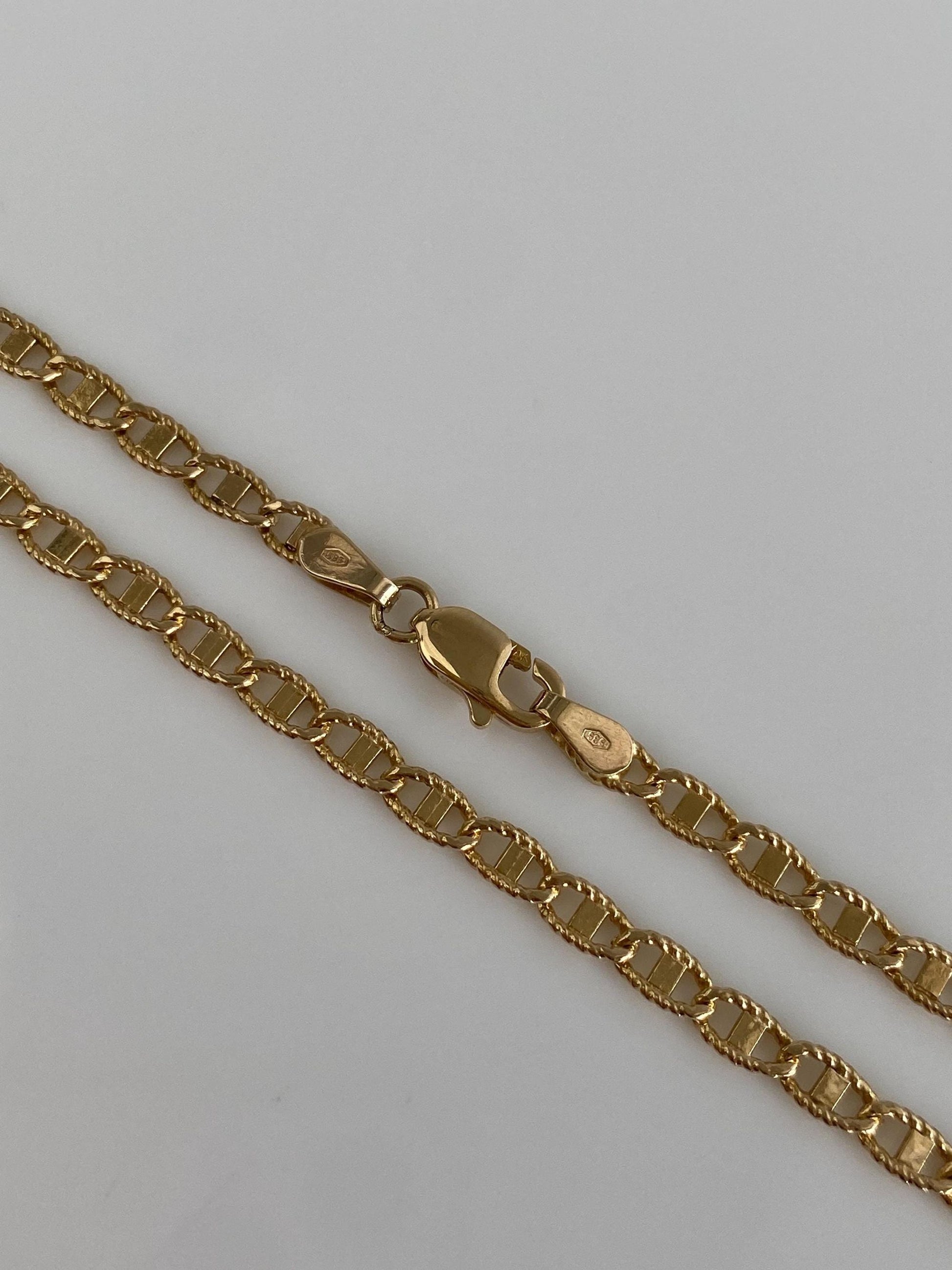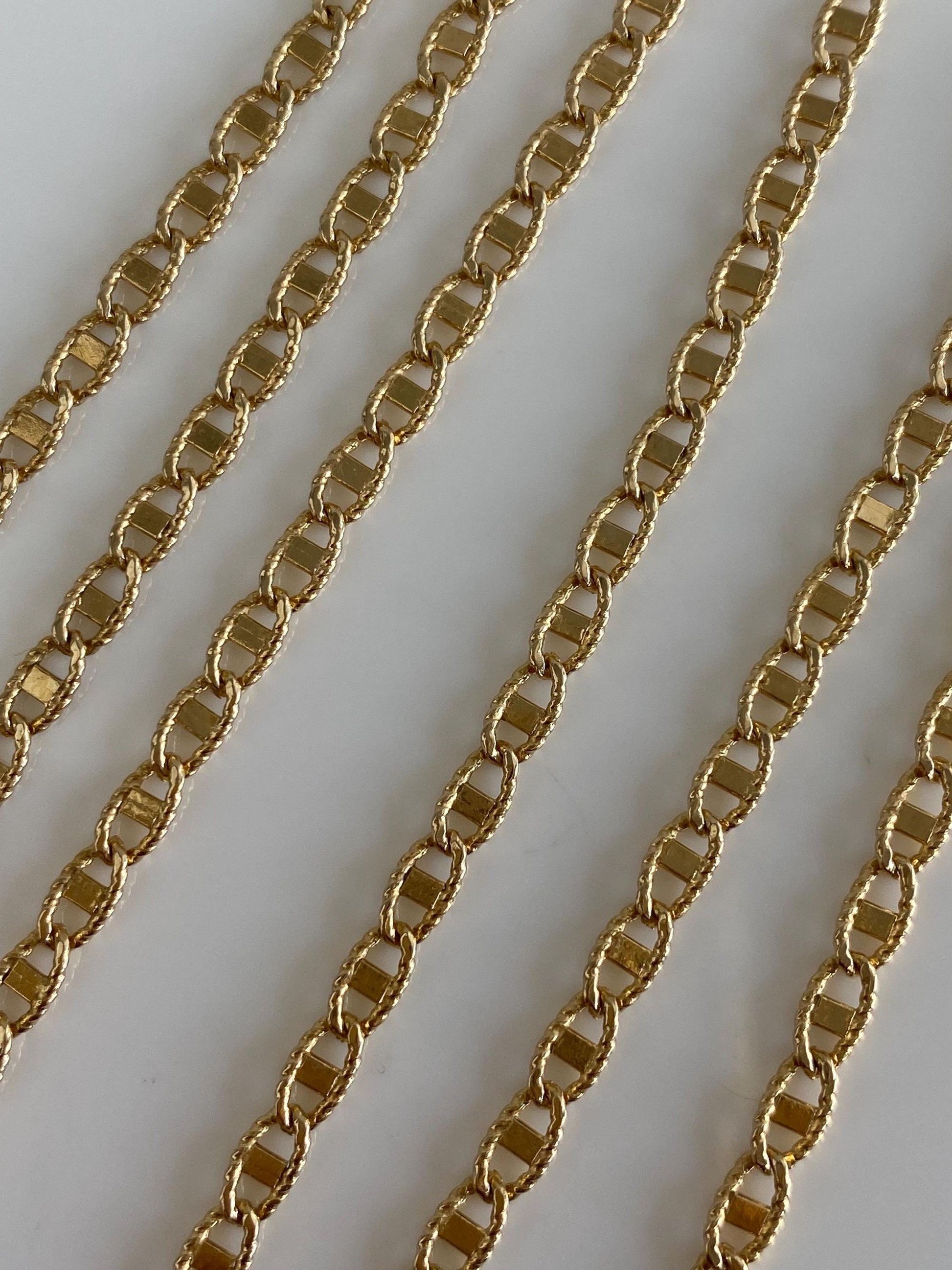 Vintage Solid 14k Yellow Gold Textured Mariner Link Chain Necklace - 22 inches