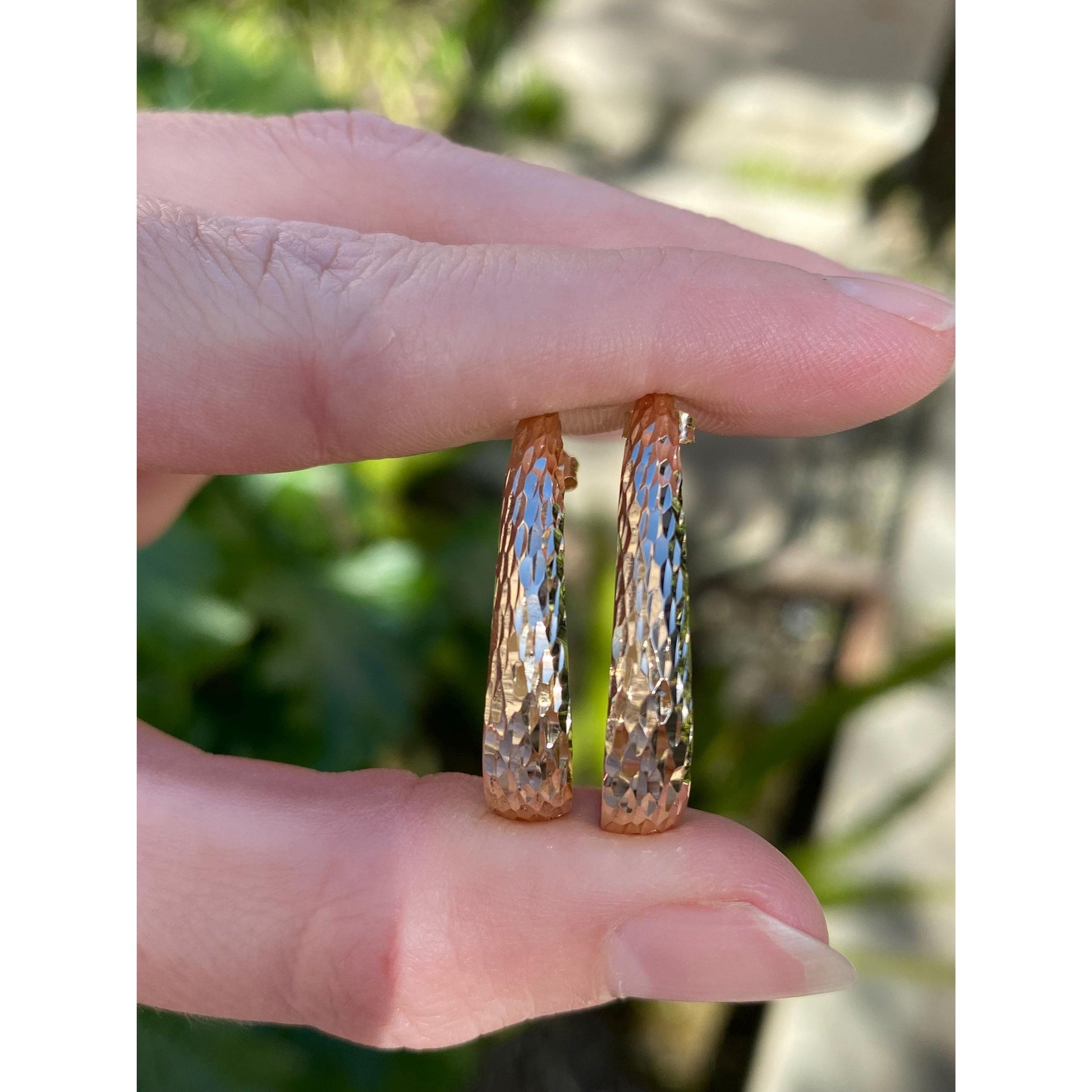 Vintage Solid 14k Yellow Gold Textured Oval Half Hoop Earrings