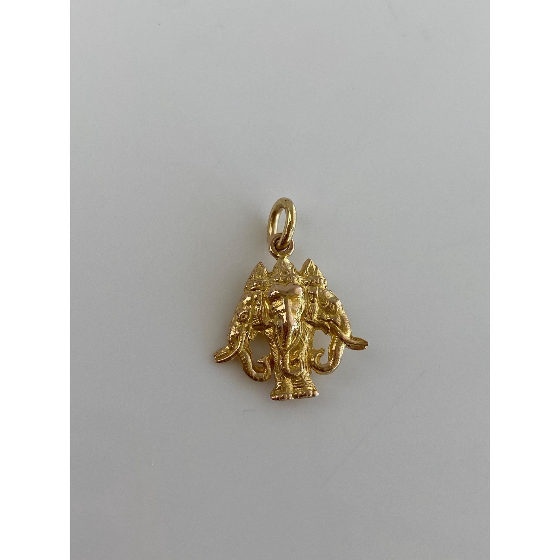 Vintage Solid 14k Yellow Gold Thai Three Elephant Head Charm
