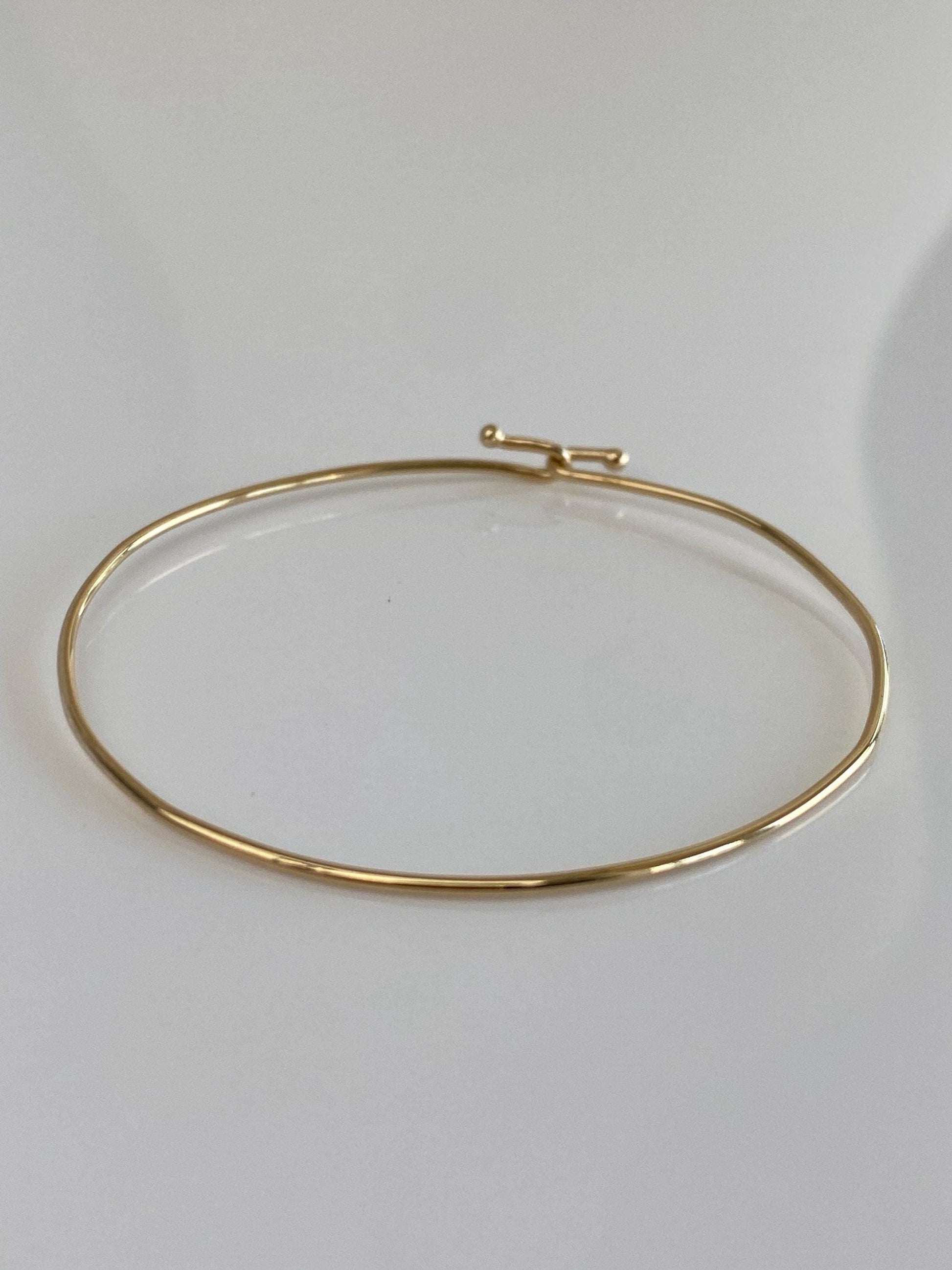 Vintage Solid 14k Yellow Gold Thin Wire Bangle Bracelet